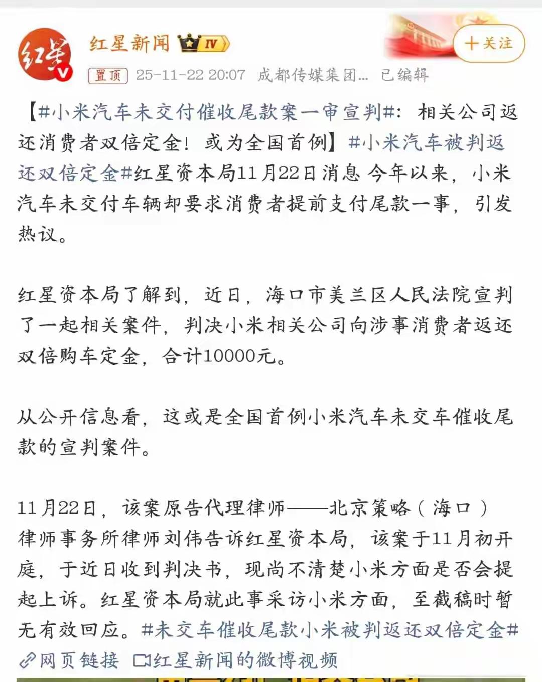 小米汽车败诉背后:雷军的风格之变,不是结束而是重构 “小米汽车败诉,雷军风格大变,一切都结束了”——这句略带悲观的论调,折射出市场对小米造车进程的复杂情绪。当海口法院的判决书落下,全国首例“未交车先付尾款”案以小米双倍返还定金告终,那个曾在发布会上意气风发、喊出“对标保时捷”的雷军,确实变了。他不再沉迷参数炫技与流量话题,转而以克制语气频繁回应争议;小米公关也从“高冷”转向“谨慎”,宣传海报加粗风险提示、客诉响应速度显著提升。但这绝非“一切都结束”的终章,而是小米从互联网思维向汽车行业逻辑的被迫重构,是一场关于信任与敬畏的艰难补课。 这场败诉的核心,是互联网“流量打法”与汽车“重资产逻辑”的激烈碰撞。小米曾凭借“感动人心,价格厚道”的口号、饥饿营销与粉丝文化横扫手机市场,这套逻辑在快消电子领域行得通——用户对小瑕疵容忍度高,问题可通过OTA更新修复。但汽车作为几十万级的家庭重资产,关乎安全与长期使用,容不得“试错式营销”。小米公开宣传“支持验车后付尾款”,合同条款却要求消费者未排产、未验车即缴全款,否则没收定金,这种“说一套做一套”的操作,被法院直指违反诚实信用原则。更致命的是“挖孔机盖”争议中,法务团队竟以“雷总不懂结构,微博删了就不算数”为辩词,亲手瓦解了小米最核心的品牌资产——雷军的个人公信力。 雷军的风格之变,本质是危机倒逼下的生存觉醒。曾经那个热衷于晒订单、谈对标、制造话题的科技大佬,如今不得不放下身段,在微博上耐心解释争议、主动致歉;公关策略从“极致领先”转向“明确边界”,连“辅助驾驶不是自动驾驶”都要加粗标注;内部更是启动调整,公关“一号位”王化转岗,战略老将徐洁云回归,这些变化都在传递一个信号:小米终于意识到,汽车行业里,流量能捧人上天,也能让人摔得粉身碎骨,消费者要的从来不是神话,而是靠谱。 但这场重构注定充满挑战。信任的崩塌只需一瞬,重建却要千日之功。中消协数据显示,2025年新能源汽车投诉中,合同条款争议占比高达41%,而小米的败诉作为“全国首例”,已形成判例效应,可能引发更多消费者维权。即便小米如今调整了宣传口径与服务态度,用户仍会翻出“定金纠纷”“功能缩水”的旧账,质疑其转变是真心悔改还是权宜之计。更关键的是,汽车行业的核心竞争力从来不止于营销话术,而是贯穿产品设计、合同条款、售后服务的全链条诚信。小米需要改变的,不只是雷军的公开风格,更是从顶层设计到基层执行的底层逻辑——把“验车后付款”写进正式协议,让宣传的功能落地为实测数据,让法务与营销统一于对用户的尊重。 将这场风波定义为“一切都结束了”,显然低估了汽车行业的复杂性,也忽视了小米的调整空间。事实上,此次败诉对小米而言,既是阵痛也是契机。短期来看,修改销售流程、修复品牌声誉需要付出成本,但长期而言,这是一次必要的“合规补课”。新能源汽车行业已进入“条款合规”决胜阶段,2025年相关合同纠纷案同比激增217%,海口法院的判决不仅给小米敲响警钟,更改写了行业交付规则,倒逼所有新势力车企重视消费者权益。小米若能以此为契机,真正将“靠谱”融入产品与服务,未必不能扭转口碑。 雷军曾说“做车是我这辈子最全力以赴的事”。这句话的分量,需要用行动而非口号来支撑。汽车赛道没有捷径,没有神坛,只有守住品质底线、兑现每一份承诺的“老实人”才能走到最后。雷军的风格之变,不是小米造车梦的结束,而是其告别互联网浮躁、真正拥抱汽车行业本质的开始。未来能否重拾消费者信任,关键不在于解释得有多好,而在于做得有多实。时间会检验SU7的安全与品质,也会检验这场“风格之变”背后的诚意——毕竟,在汽车这场长跑中,能笑到最后的,永远是那些懂得敬畏市场、尊重用户的品牌。