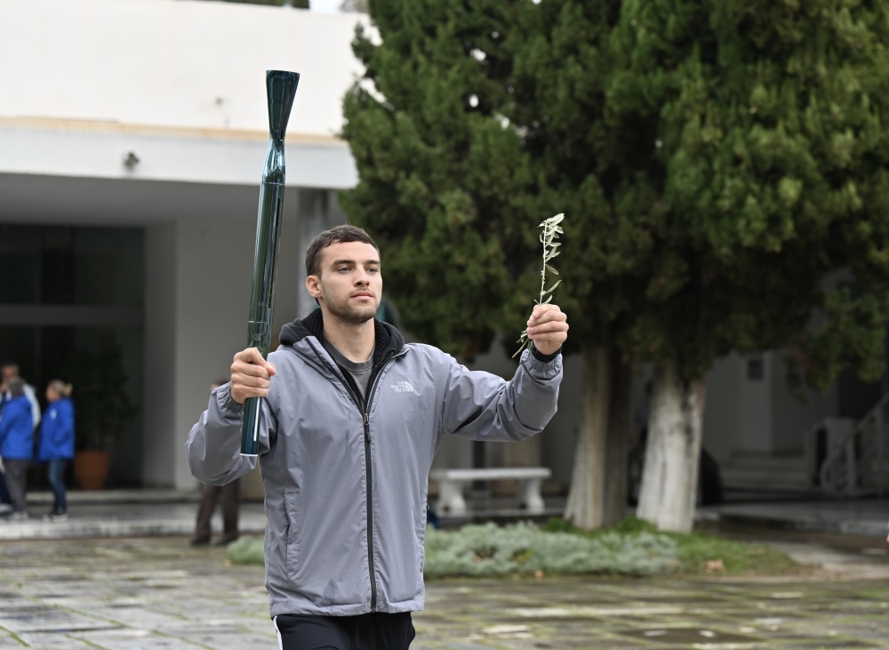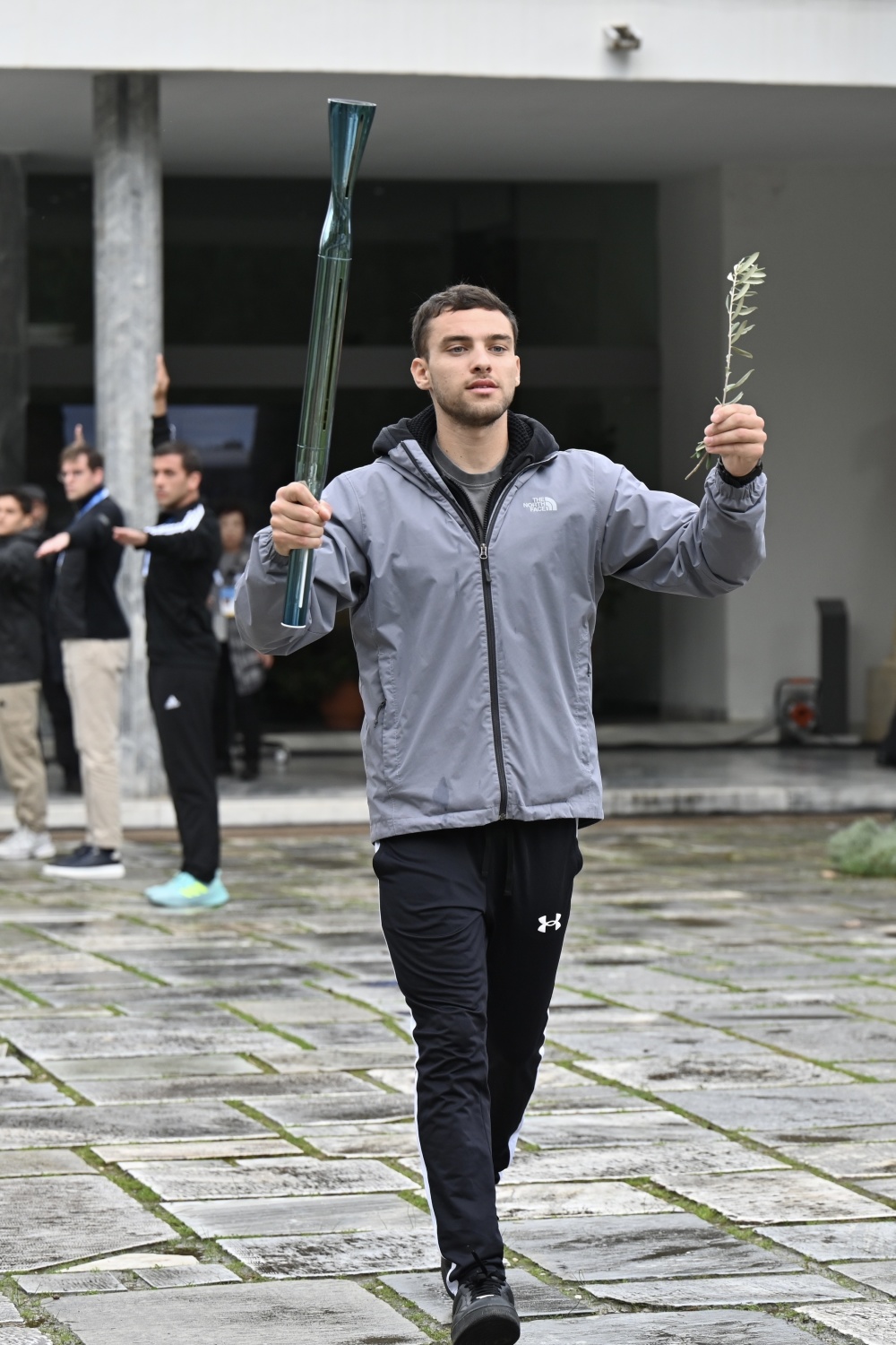 11月25日,第一棒火炬手、希腊运动员彼得罗斯在彩排中。新华社记者吕优摄