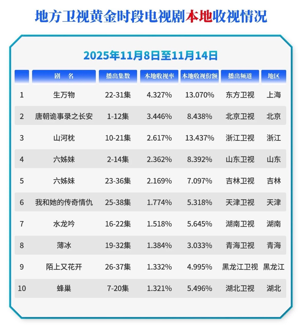 太争气了!地方重播还是收视第一cvb分榜出炉,地方卫视黄金时段电视剧本地收视情况《生万物》都是第一🏆