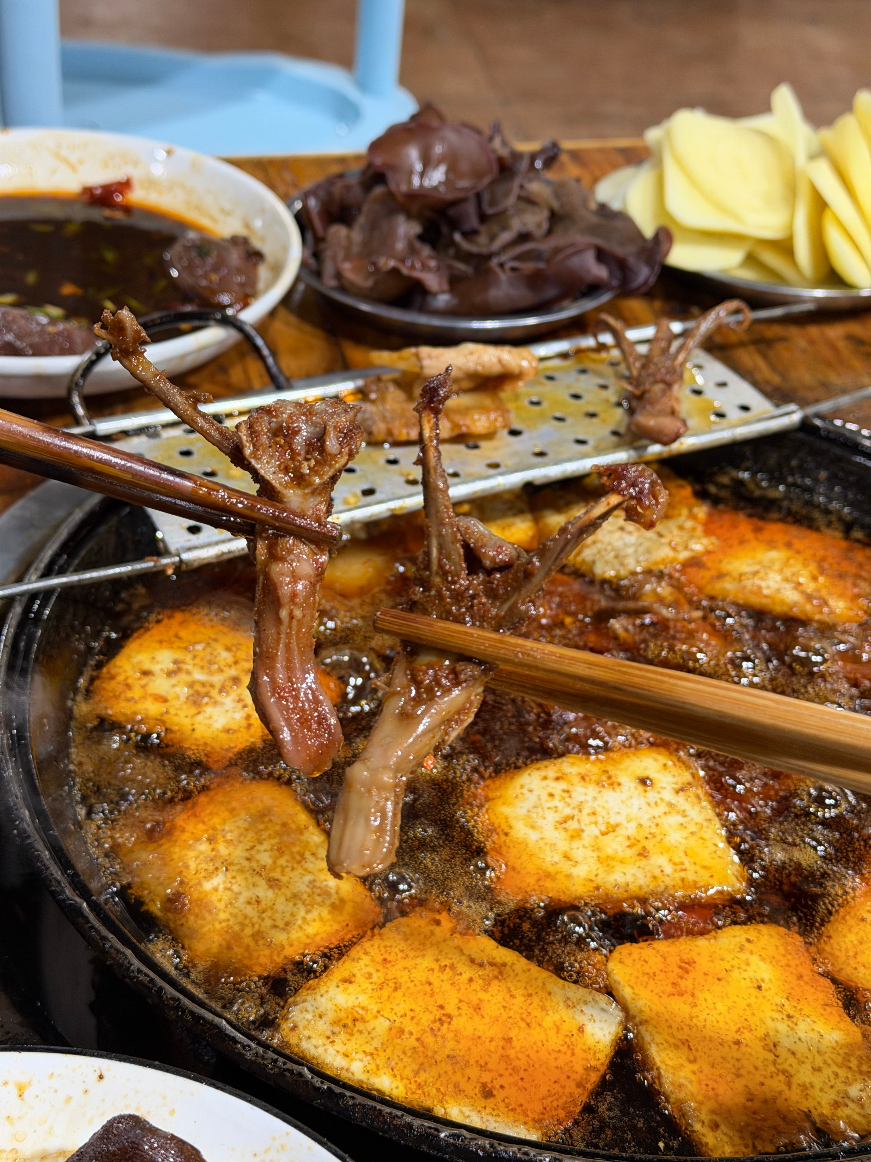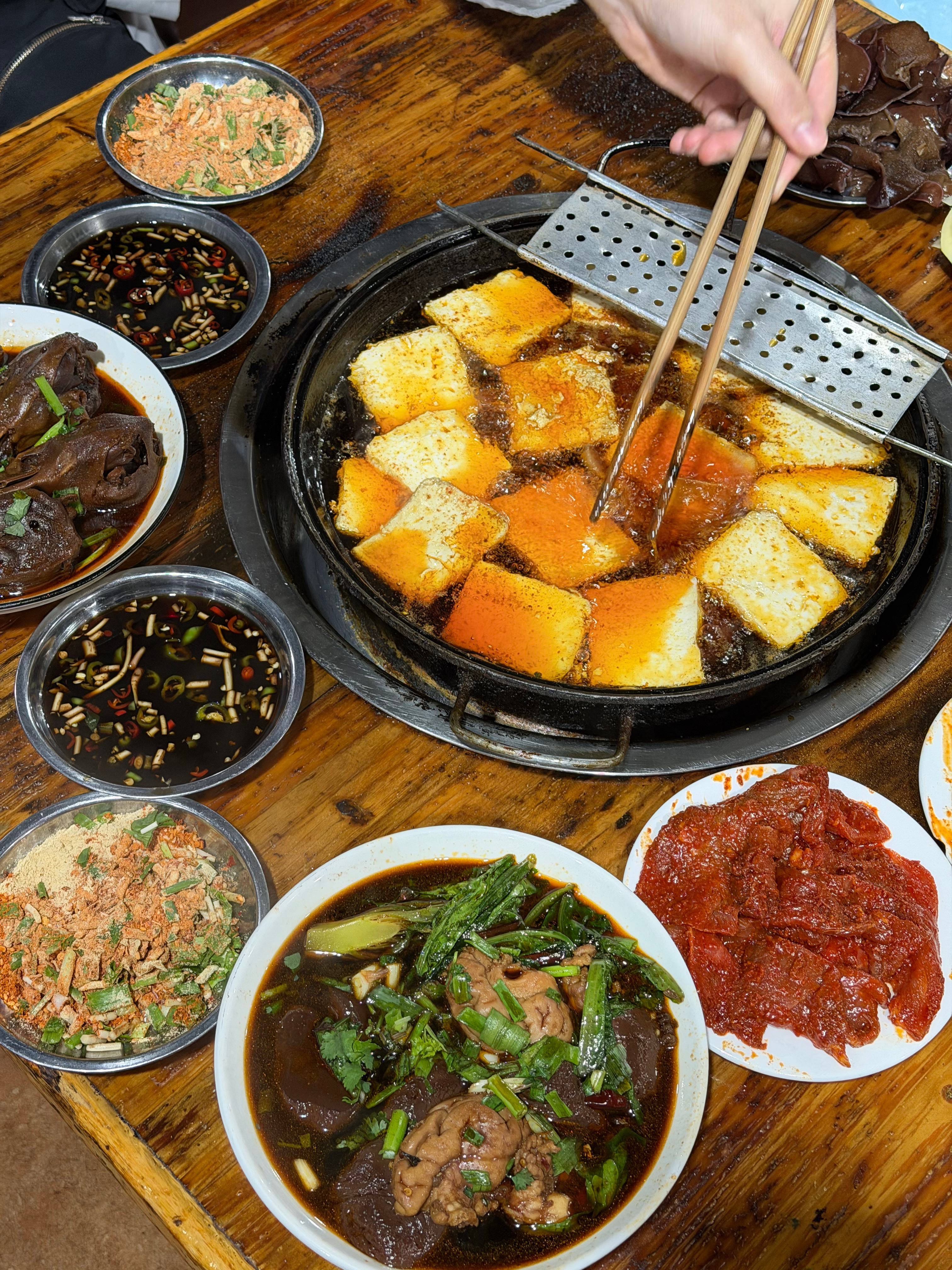 雅安的臭豆腐名不虚传,一进店真的庞臭,吃进嘴里烹香。这家店藏在菜市场旁边,他家鸭