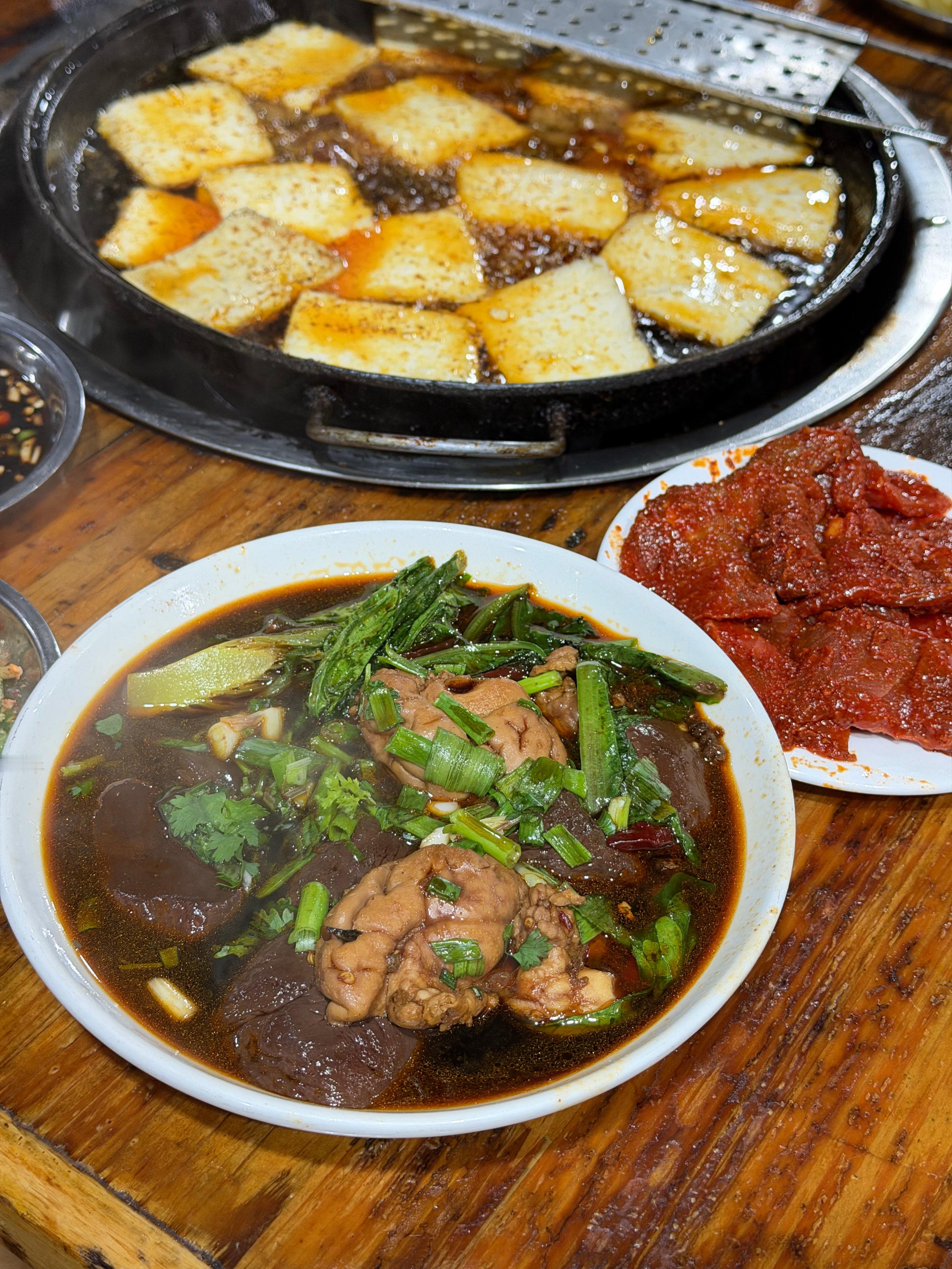 雅安的臭豆腐名不虚传,一进店真的庞臭,吃进嘴里烹香。这家店藏在菜市场旁边,他家鸭脑壳真的好吃,卤料味巨香,用这个料冒了一碗粉儿,又麻又辣超上头。下次一定还要来吃一碗冒菜。