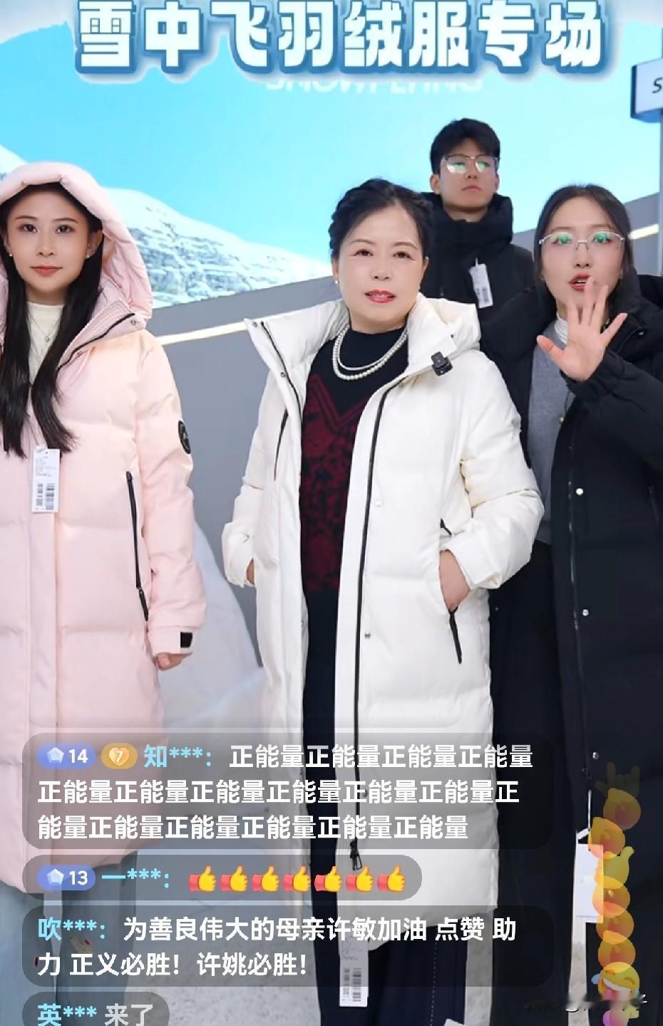 许敏人美心善! 今晚开直播专场, 卖雪中飞羽绒服, 在线人气很旺, 商品秒光。