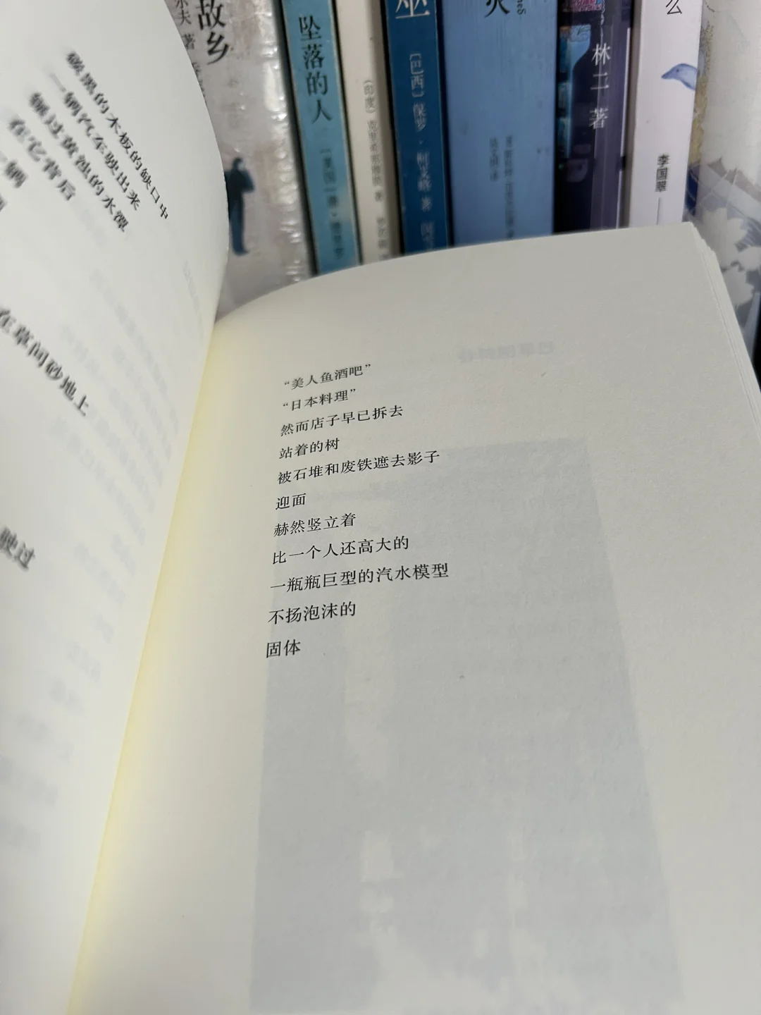 👀他的诗有自己的语言和味道,这种味道不同于我们熟悉的汉语,有一种无法言语的隔膜感,亲切但不亲昵。 诗人一一描绘着身边随处可见的日常事物,情感质朴又直接,充满了城市烟火气和诗意,但温暖中又夹杂着片刻清凉,读起来感觉很理智。