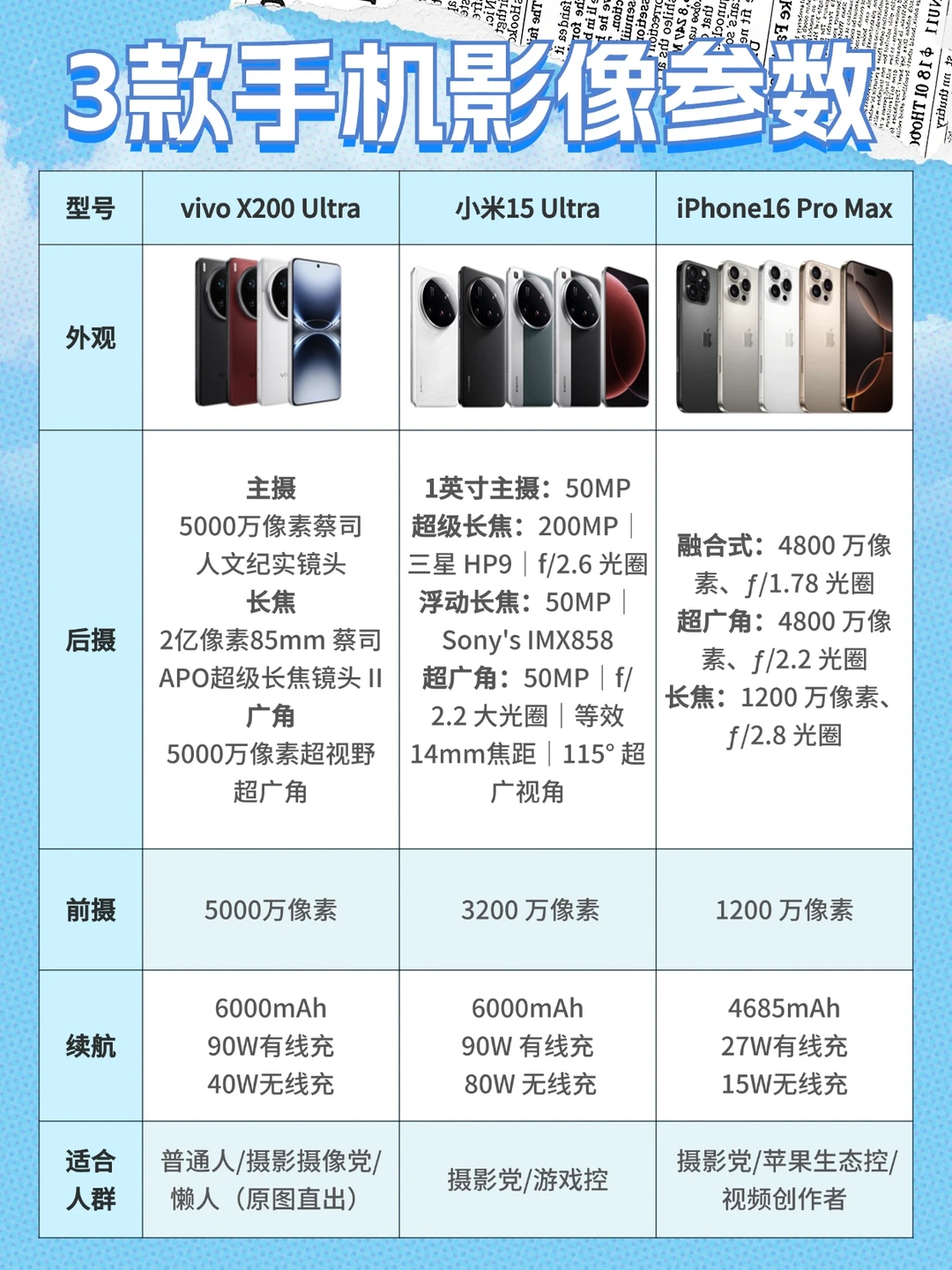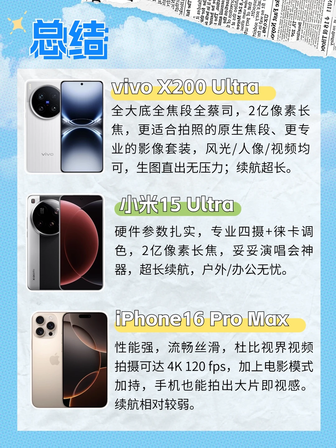 vivo X200 Ultra、小米15 Ultra、果子16 Pro Max这3台要怎么选?