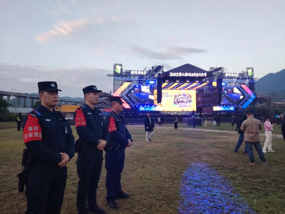 近日,“一锅鸡杂·潮玩黔江”2025第六届鸡杂美食文化节暨廊桥音乐节在重庆市黔江区濯水景区热闹启幕。黔江区公安局提前谋划、精准施策,圆满完成安保任务,用坚守为鸡杂盛宴筑牢平安防线。