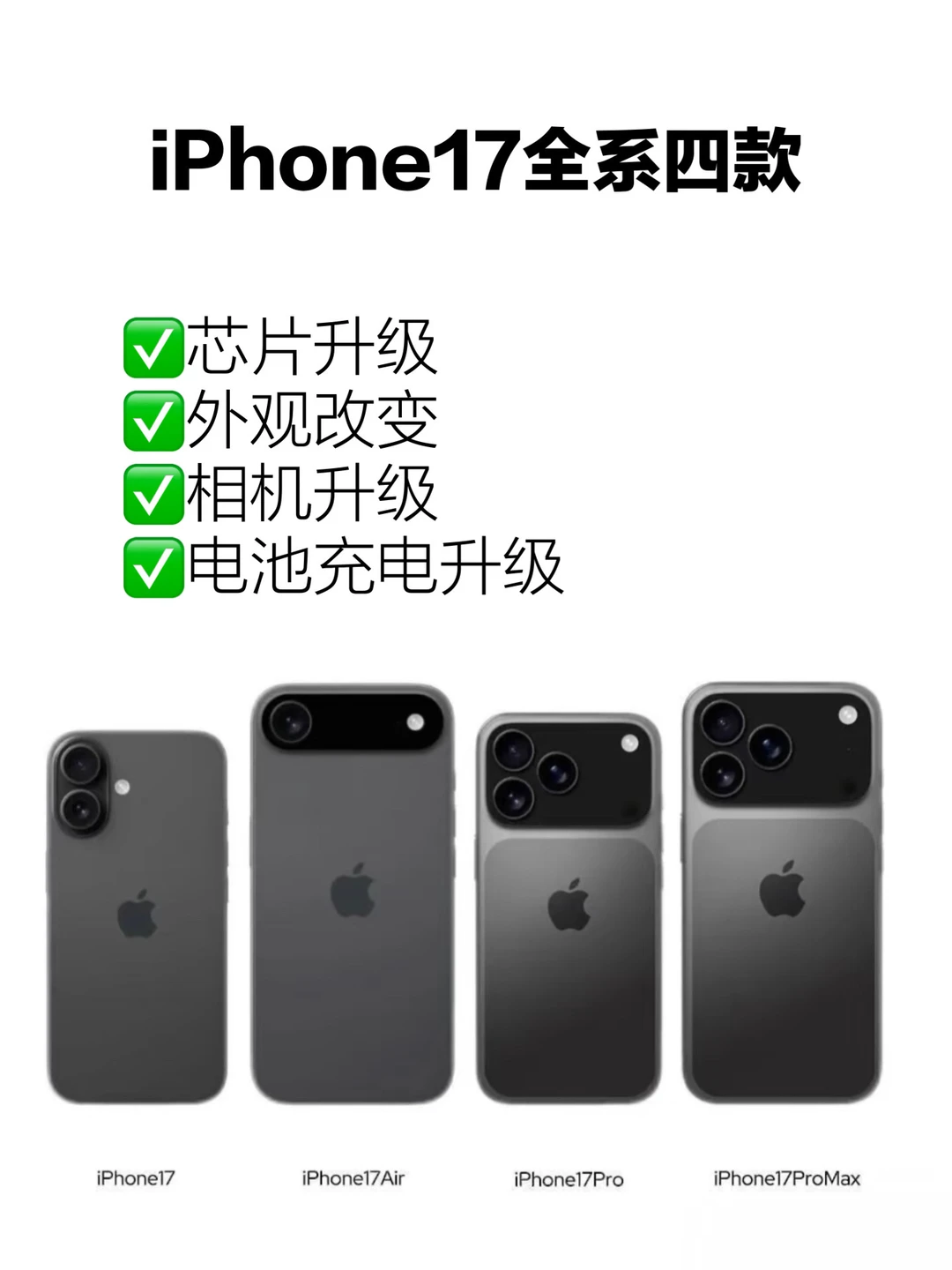 iPhone17Air,Pro和ProMax摄像头模组发生改变,变为更大的摄像模组,iPhone17基础款保持和16一样的外观