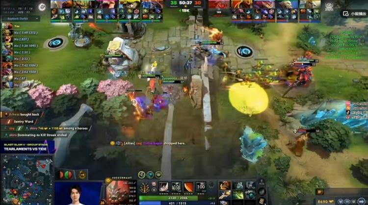 [34分钟]Tearlaments也抱团拆掉Tidebound下路高地,Tidebound抱团反打只留住了zzq的杰奇洛!