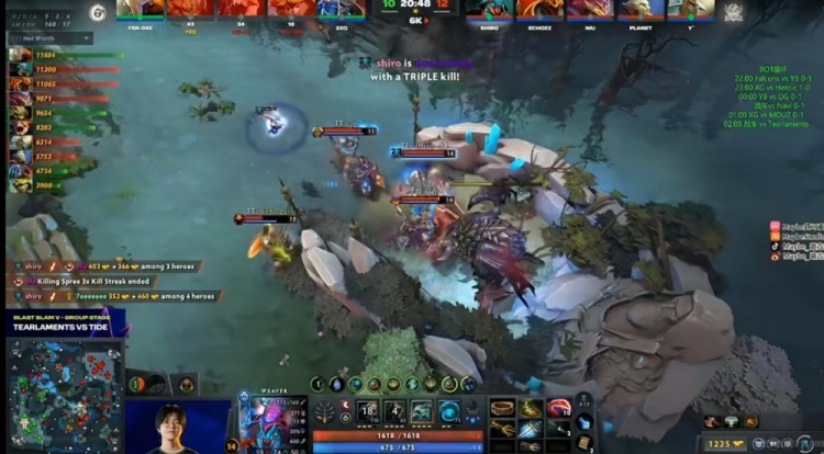 [39分钟]Tidebound开雾来到对手高地下,Srf獣直接TP人群白给了!但是Tidebound击杀獣用了两个大招,回头YSR-04E主宰斩死Echozz龙骑,Tearlaments在少个人的情况下还打了个1换3!