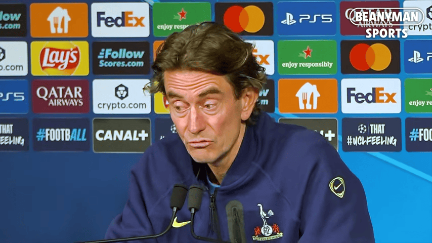 记者:你执教热刺初期的表现不错,尤其是对阵巴黎和客场挑战曼城的比赛都打得很好,但现在球队在各项赛事中11场只赢了3场。你认为球队状态下滑的原因是什么?你对让球队和这个项目重回正轨有多大信心?
