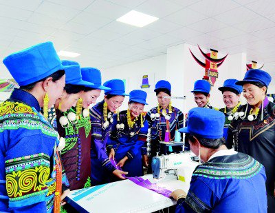 凉山州布拖县依撒社区居民交流彝绣技能。资料图片