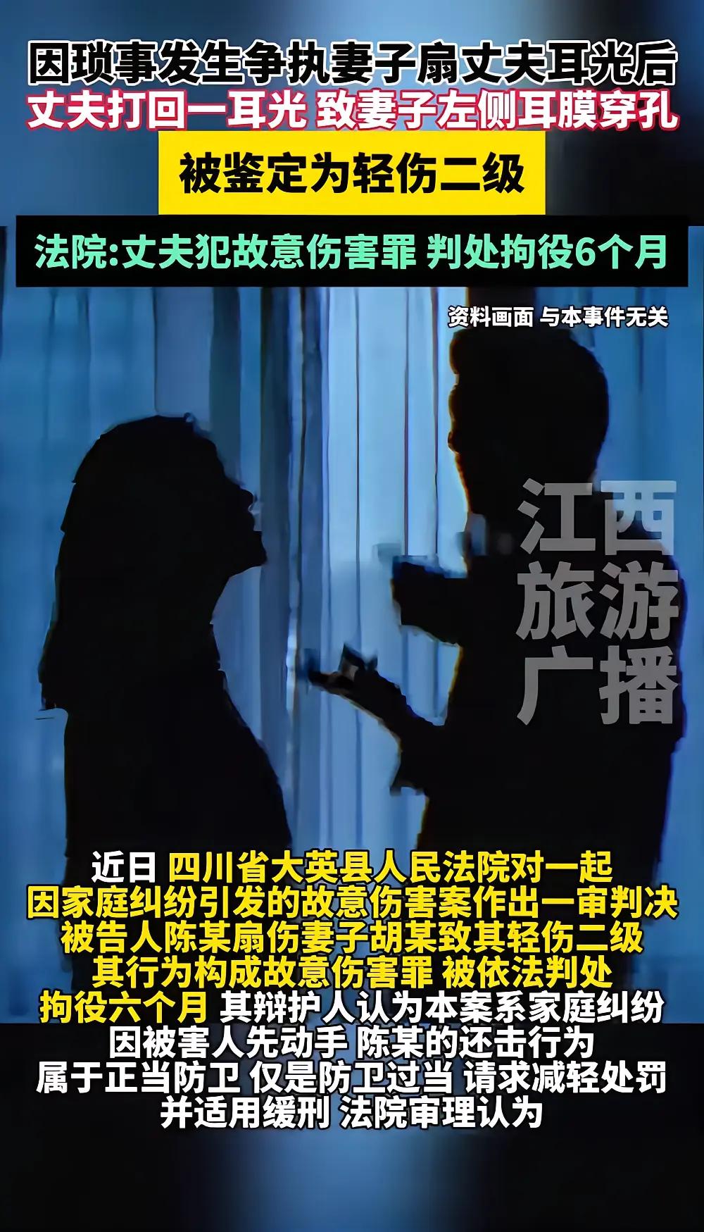 四川遂宁,女子给老公打电话让他接自己回家,可老公就是不接电话,女子气的打车回家后扇了老公一巴掌,可谁知道老公反手就是一耳光将女子打得耳膜穿孔。女子气愤报案,结果很悲剧! 在这个看似普通的家庭冲突背后,隐藏着太多我们难以察觉的细节和人性的复杂。一个女人的愤怒,一次冲动的反击,竟然演变成一场令人扼腕叹息的悲剧。故事的起因或许很简单:一通电话、一句请求,却引发了家庭中潜藏已久的裂痕。 我们常说,家庭是温暖的港湾,但当矛盾积累到一定程度,它也可能变成最危险的战场。这个女人,只是想回家,想和丈夫共度一段温馨时光,却被冷漠的态度激怒了。她的愤怒或许是积压已久的委屈,是对家庭关系的无声控诉。打车回家,她的心中满是失望与愤怒,下一秒,一记巴掌狠狠落在了丈夫的脸上。 然而,令人震惊的是,事情远没有结束。丈夫的反应比她预料的还要激烈,一记耳光让女子的耳膜穿孔,痛苦不堪。这一瞬间,家庭的温情被撕裂成碎片,变成了令人心碎的悲剧。她的愤怒,变成了无法挽回的伤害;他的愤怒,也让一个家庭陷入了深深的裂痕。 事情的结局更令人扼腕叹息。女子气愤报警,本以为可以借助法律的公正,得到应有的保护和慰藉,却没想到迎来的是另一场悲剧。家庭的裂痕被无限放大,原本可以通过沟通解决的问题,却变成了不可逆转的悲剧。 这个故事,折射出太多我们身边的现实:家庭中的矛盾、情绪的失控、法律与人性的博弈。我们常常在冲动中做出伤害彼此的事情,却忽略了沟通和理解的重要性。每一次愤怒的爆发,都是一次心灵的伤痕累累,等待修复的时间或许比我们想象的更长。 更令人深思的是,这样的悲剧背后,隐藏着多少家庭的无声呐喊?多少家庭在矛盾中挣扎,却没有勇气去面对和解决?我们是否也曾在情绪的海洋中迷失了方向,忘记了家庭的温暖和责任? 这个故事提醒我们:家庭是需要用心经营的港湾。面对矛盾,不应一味地用暴力和指责来解决,而是要用理解和包容去化解。每个人都不是完美的,都会有情绪失控的时候,但更重要的是,我们要学会控制自己的情绪,学会在冲突中寻找和解的钥匙。 当然,法律的公正固然重要,但更希望每个人都能在家庭中找到那份温暖和理智。家庭的幸福,不仅仅是外在的和睦,更是内心的平静与理解。我们要学会在冲突中保持冷静,用爱与耐心去修补那些看似无法修复的裂痕。 这起悲剧,或许只是千千万万个家庭矛盾的缩影。它告诉我们,家庭不是战场,而是需要我们用心呵护的花园。每一份理解、每一份包容,都是家庭幸福的基石。希望所有的家庭都能从这起事件中吸取教训,学会在冲突中寻找理智与温暖,让爱成为我们最坚实的后盾。 因为,只有用心经营的家庭,才能真正成为我们心中的避风港。而不是因为一时的冲动,毁掉一辈子的幸福。让我们都记住:爱,是家庭最坚韧的力量,也是我们面对一切风雨的最大底气。家庭暴力的老婆