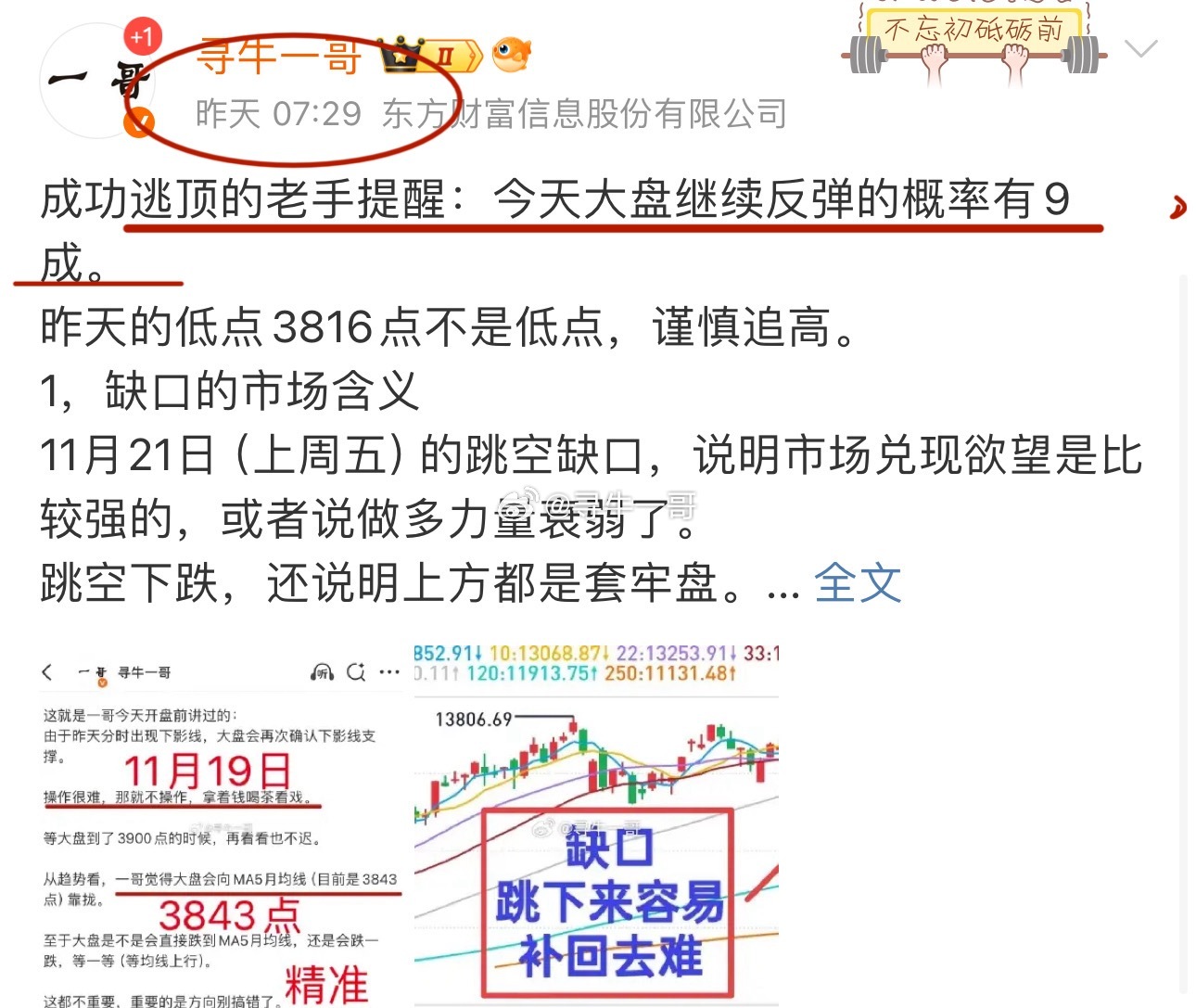 A股:21日的跳空下跌缺口,25日的跳空上涨缺口,上下两个缺口先补哪个?今天会不会直接下跌,回补昨天的缺口?一,主力有那么好吗?主力辛苦挖的坑还是热的,会轻易让散户爬出来吗?昨天市场整体上是个冲高回落的态势。深成指和创业板强一点,盘中涨到了MA5天均线上方,上证综指全天都被MA5均线压制。最终三大指数收盘都在MA5均线之下,这是比较弱的状态。二,昨天的跳空高开是不是诱多?昨天的上涨是符合预期的!一哥昨天开盘前讲过,大盘上涨的概率是9成!(图2)比较让投资者惊喜的是市场跳空高开。跳空高开,主力这么玩,有何意图呢?1,主力想玩波大的,迫不及待建仓。2,主力“刻意”抬高指数,营造气氛,让周一割肉出局的投资者进场追高,或吸引仓位轻的投资者进场。第一种可能性大吗?如果是真的,何必把大盘砸下来,而且还是跳空下砸(21日)。第二种可能性是不是更大一些?是渔夫把主力想得太“萎缩”了吗?三,先回补上涨缺口?深成指周一低点是12448点,周二高点是12882点,高低点相差434点。创业板周一低点是2892点,周二高点是3027点,高低点相差135点。上证综周一低点是3816点,周二高点是3882点,高低点相差66点。从短线角度来说,这个空间是不小的。深成指和创业板指,昨天部分回补了21日的跳空下跌缺口。深成指盘中最高点是12882点,而20日低点是12970点,差距并不大。如果不是回落幅度较大(105点),还是挺强势的。今天比较差的结果,是大盘直接下跌,把昨天的跳空上涨缺口回补了。今天比较好的结果,大盘再试图向上冲一冲,再度攻击MA5均线区域,甚至试图再补一些缺口,然后再回落。各位看官,你们怎么看?个人观点,仅供交流,不构成投资建议!理财有风险,投资需谨慎!
