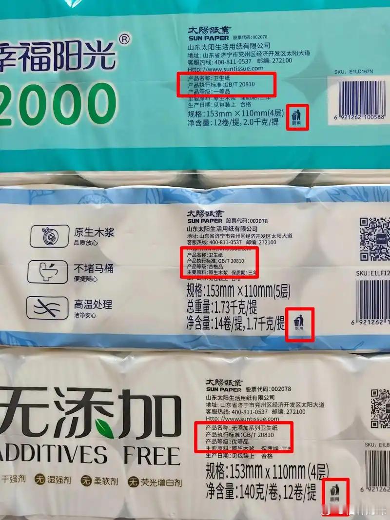 家里的纸现在都是分级购买的:孩子用的纸,不管是擦脸擦嘴还是擦屁股,都是含有保湿因子的云柔巾;餐桌和厨房放抽纸,也就是纸巾纸/面巾纸,执行标准GB/T 20808;厕所用卷纸,也就是卫生纸,GB/T 20810,原料不需要100%原生木浆,更便宜也更节约资源,客厅里也会放一卷抽纸,擦桌子擦地捡头发都用卷纸;出门包里会放小包的手帕纸; 另外,点外卖和和黑色塑料小软勺放在一个袋子里的纸巾,只用来擦桌子!