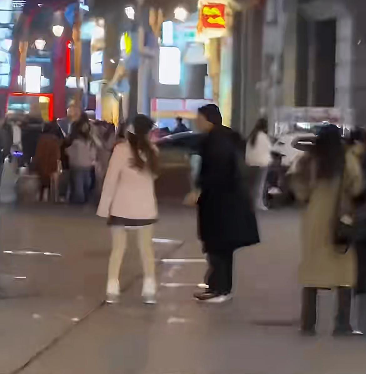 街头散步偶遇,男孩下跪祈求女朋友原谅,这种舔狗式的求爱方式,抛弃尊严,得不到爱情。对于女孩来说,这样喜欢走极端的男生,有多远走多远吧,你心软原谅她,最后一定伤害的是自己。对于男孩来说,女生再漂亮,身材再好,她不爱你,跪舔来的不是爱情,是施舍,你只会变成她的提款机,情绪回收站,备胎。