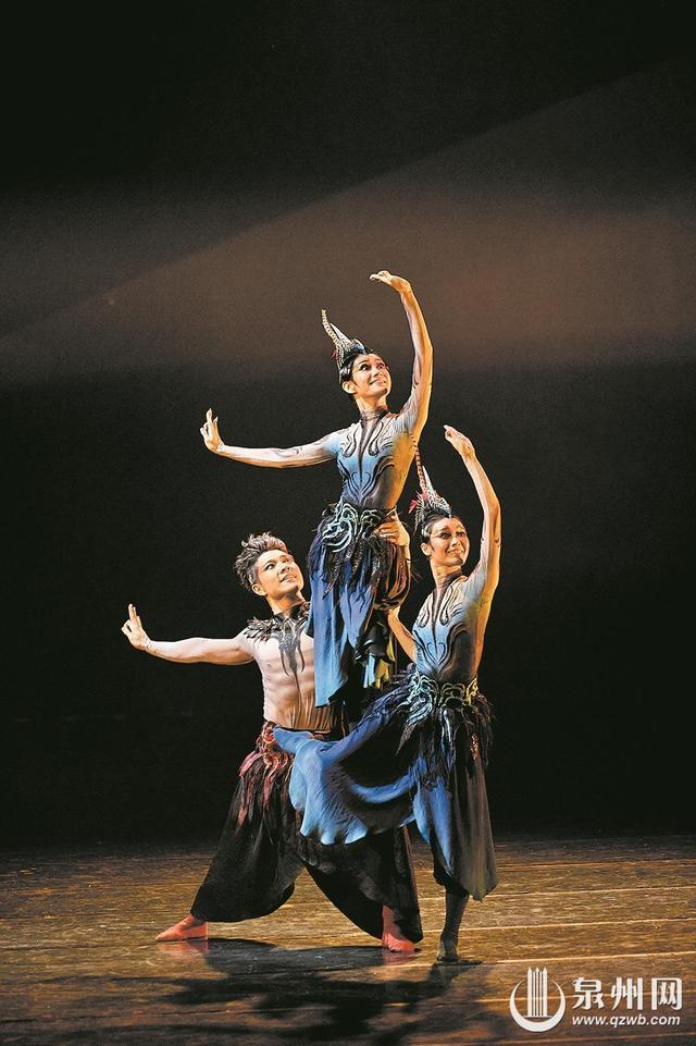 荣膺单双三编导奖金奖和表演奖金奖的三人舞《双燕归脊》,创作灵感源自唐代福建闽南地区“皇宫起”传统建筑“红墙燕尾脊”。“燕尾脊”正脊呈曲线,两头翘起如燕尾,刻画了闽南人“爱拼敢赢、凌云冲霄”的精神气质,舞蹈通过“双燕归脊”的意象,象征游子归家、亲人团聚,传递出闽南人亘古不变的乡愁和亲情。作品融合闽南传统舞蹈元素和现代编舞手法演绎燕尾脊的灵动、刚毅与飞翔之美,表达坚韧向上、泥燕归家团圆的情感内核。