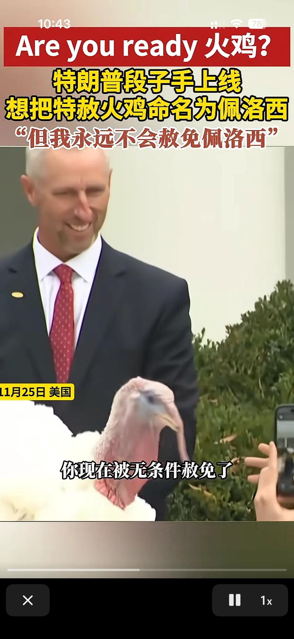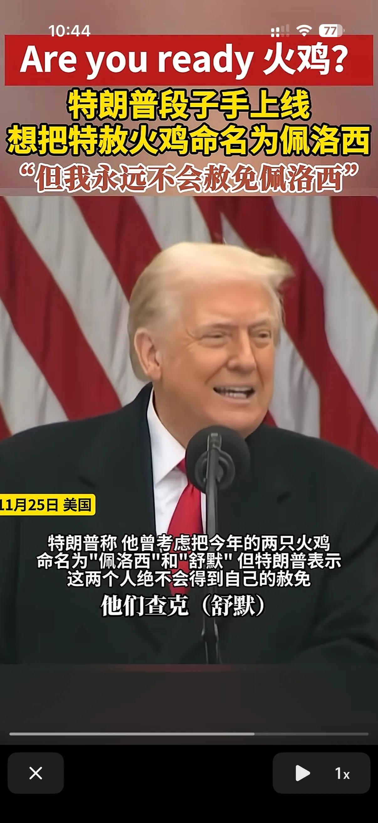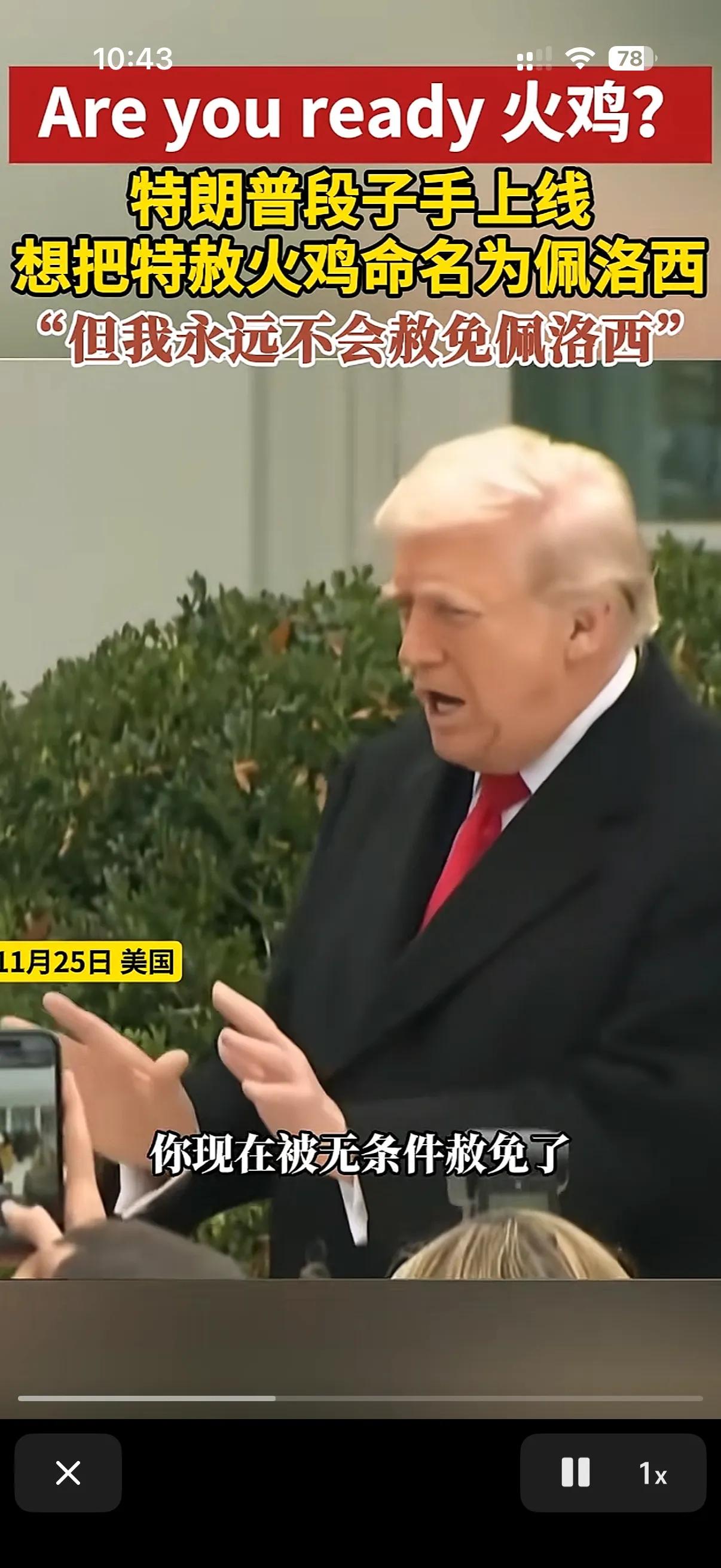 特朗普宁愿赦免火鸡也不会赦免佩洛西! 可以说特朗普是真记仇啊,做他的仇人是能被特朗普记一辈子的,而且还是那种永远不会赦免的! 在一年一度的美国传统节日上,特朗普当众赦免了一只火鸡! 并且特朗普还说道,原本这只火鸡应该被自己取名叫佩洛西的,然后他发现自己是永远都不可能赦免佩洛西的,这才作罢! 可以说特朗普把恩怨分明是演绎的淋漓尽致!