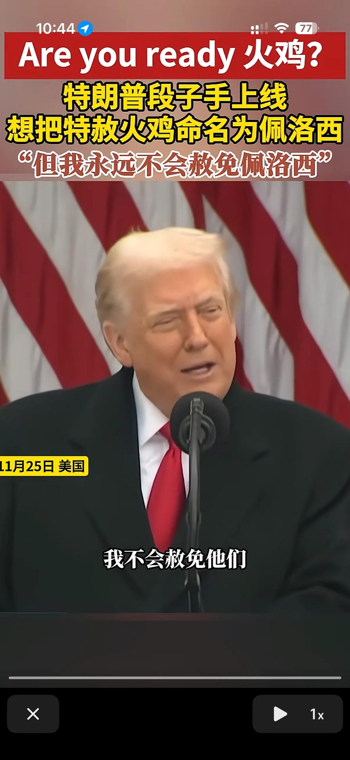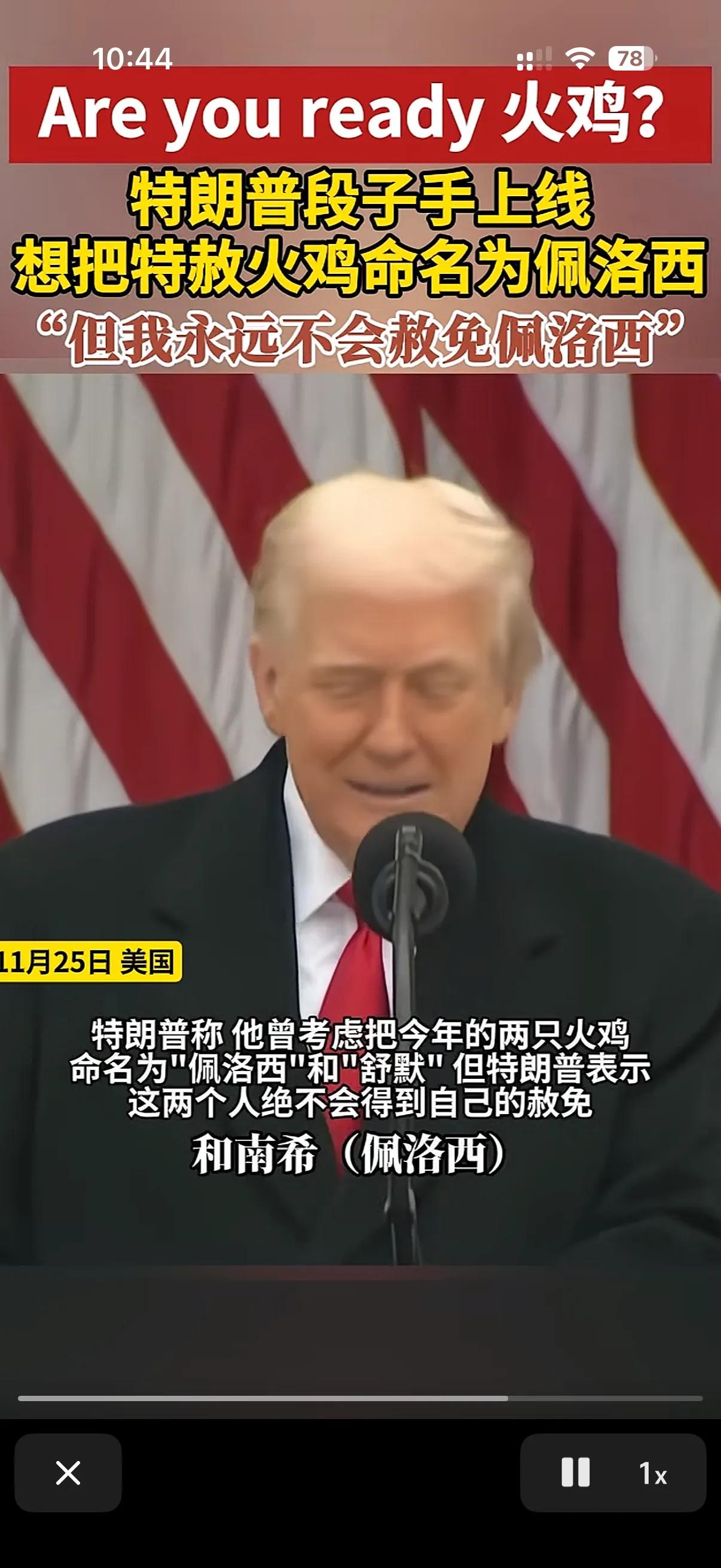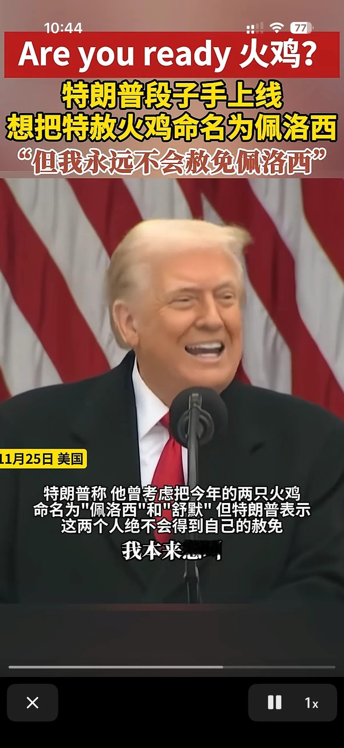 特朗普宁愿赦免火鸡也不会赦免佩洛西! 可以说特朗普是真记仇啊,做他的仇人是能被特朗普记一辈子的,而且还是那种永远不会赦免的! 在一年一度的美国传统节日上,特朗普当众赦免了一只火鸡! 并且特朗普还说道,原本这只火鸡应该被自己取名叫佩洛西的,然后他发现自己是永远都不可能赦免佩洛西的,这才作罢! 可以说特朗普把恩怨分明是演绎的淋漓尽致!