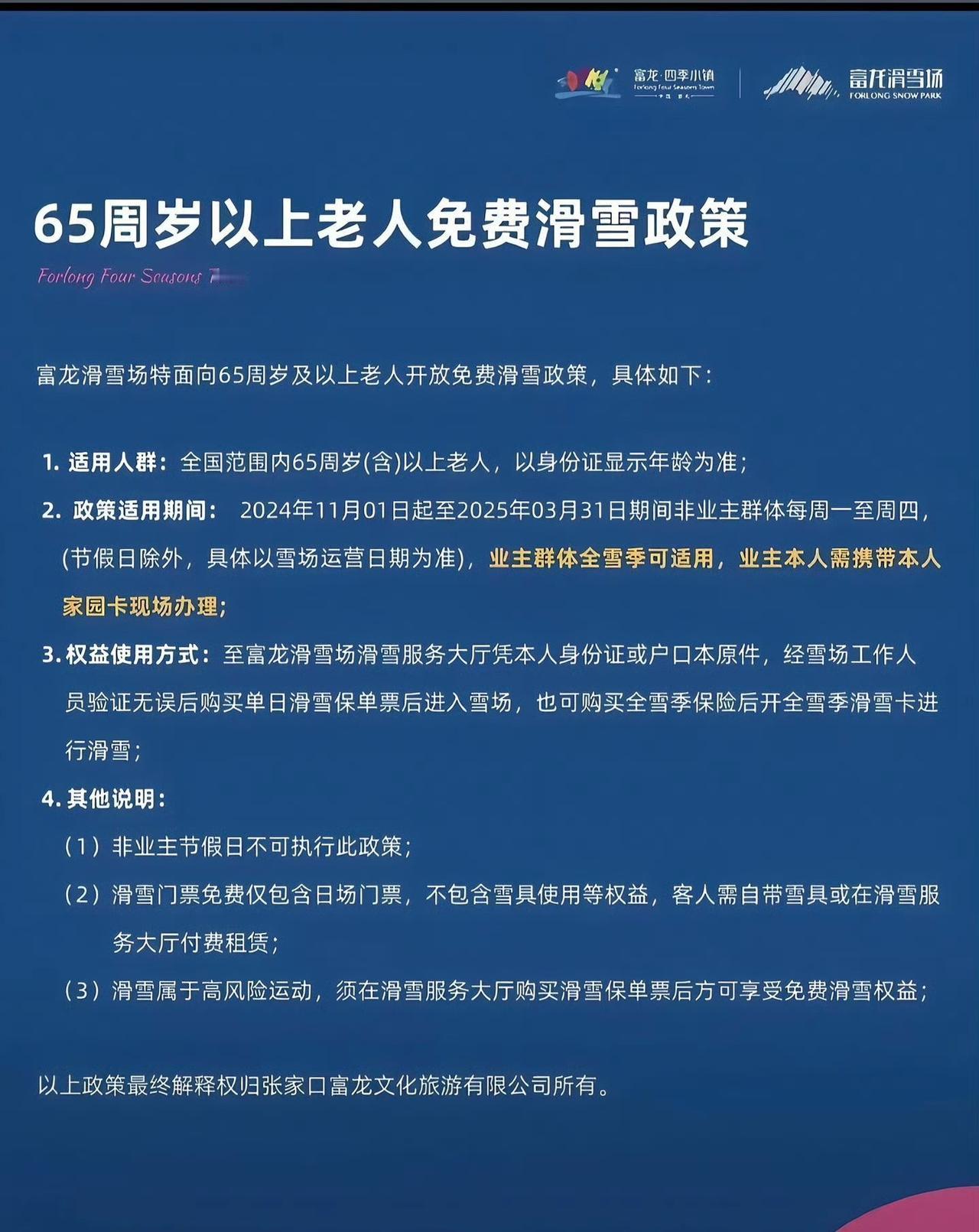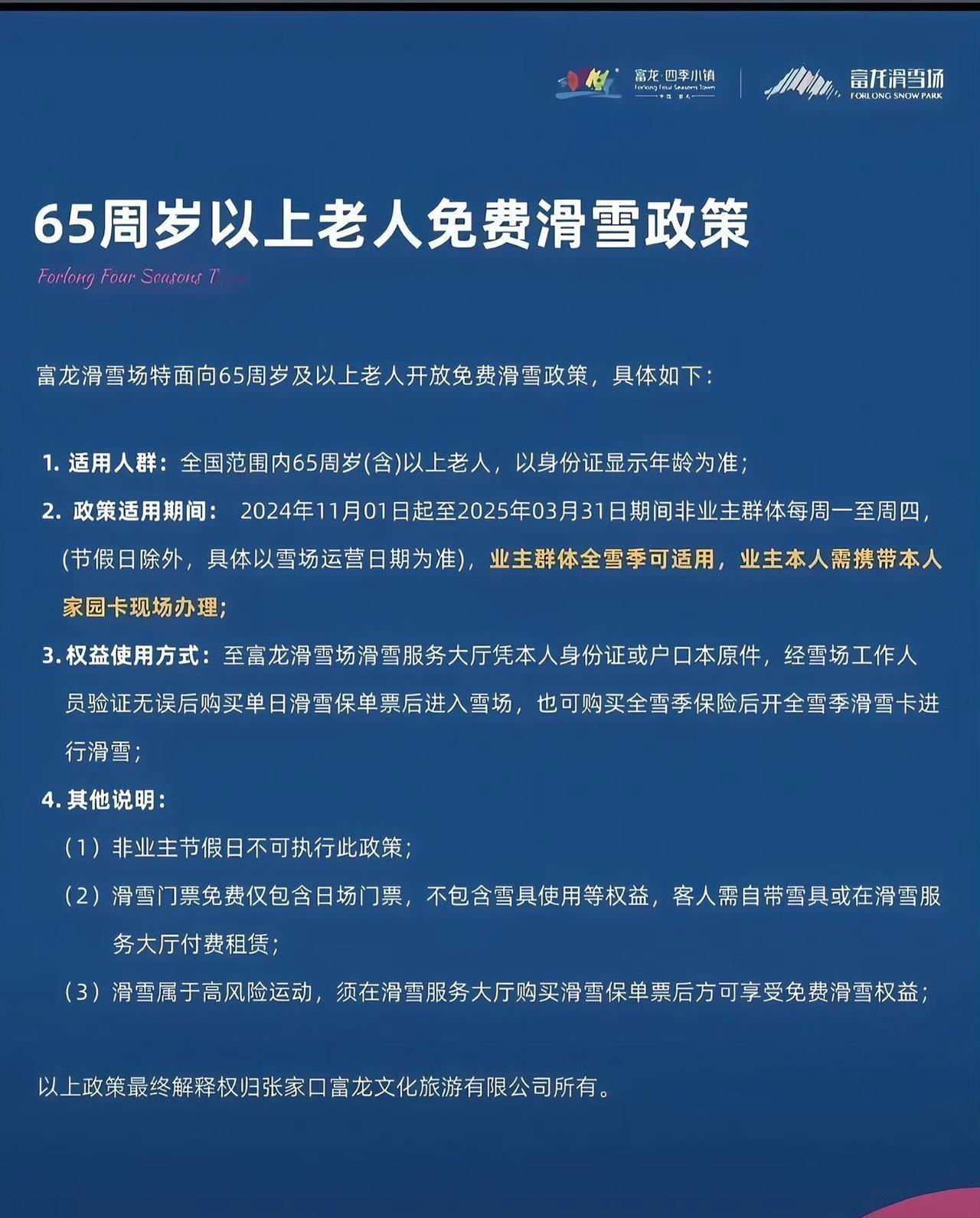 一个北方冬季滑雪场65岁以上免费滑雪的公告,看到这份公告你们作何感想。是不是有点错配的赶脚,像是医院说欢迎男士免费生孩子,饭馆说3岁孩子啤酒免费喝,电影院说盲人免费看电影,100岁的老人免费看病,KTV说聋哑人免费唱歌。出这个政策的领导,真以为65岁老人都吃了钙中钙,筋骨强健。