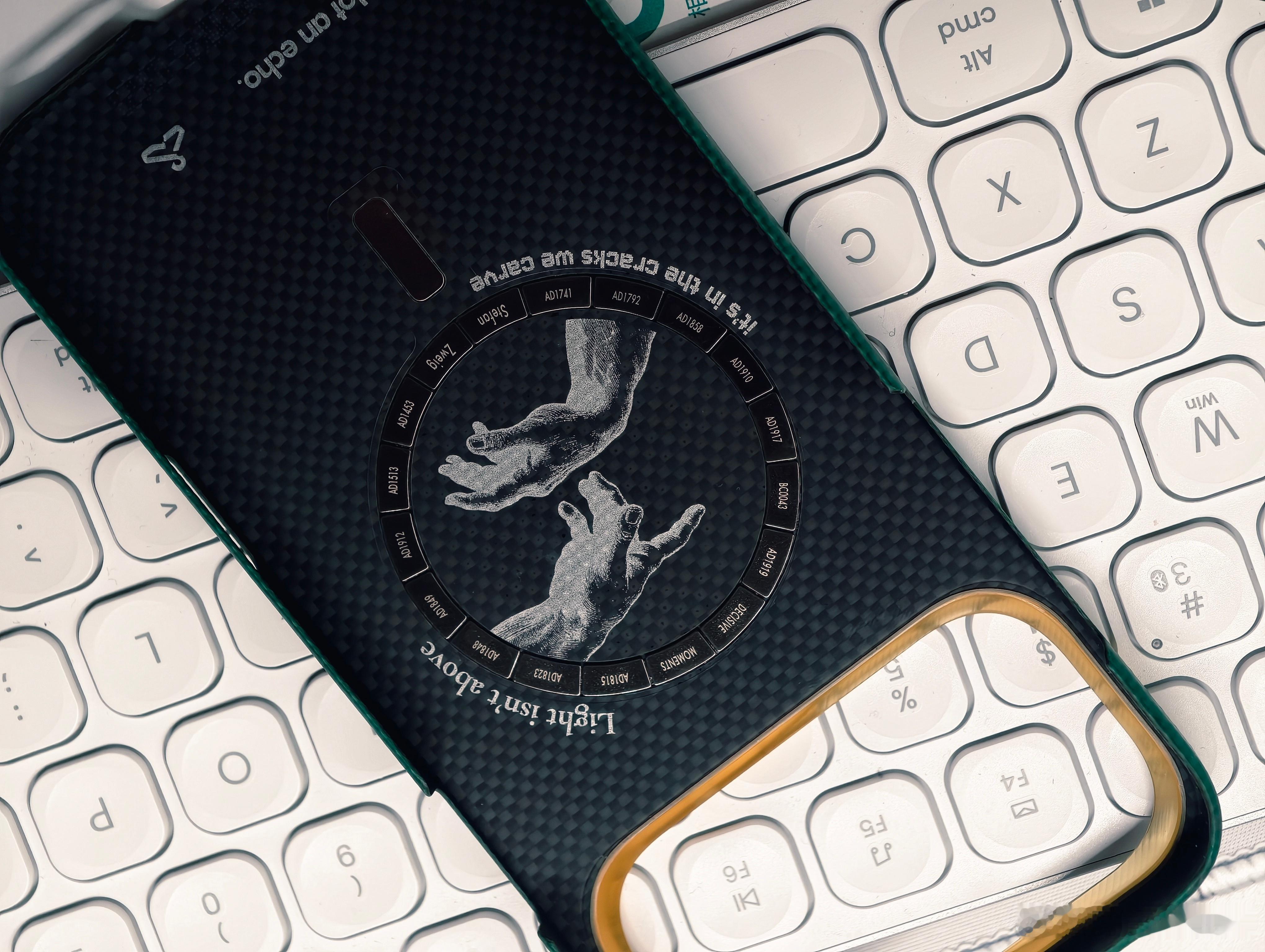 newcloth 士官长:米开朗基罗 星宇橙与 iPhone17pm,是天成之合。敬新机新天线设计,弃金属之扰,取好奇号同款 Ultem 晶体松脂。宇航级高透波材质,让信号如光般无界穿行。紧凑开孔配康宁玻璃,藏锋芒于细节;Mini 裸切充电口贴合掌心,融舒适于握持。内里丝印《创世纪》,以丝印工艺复刻艺术史诗。光从非恩赐,乃勇气刻就的裂缝所生 —— 科技为骨,艺术为魂,这便是器物的庄重与诗意。