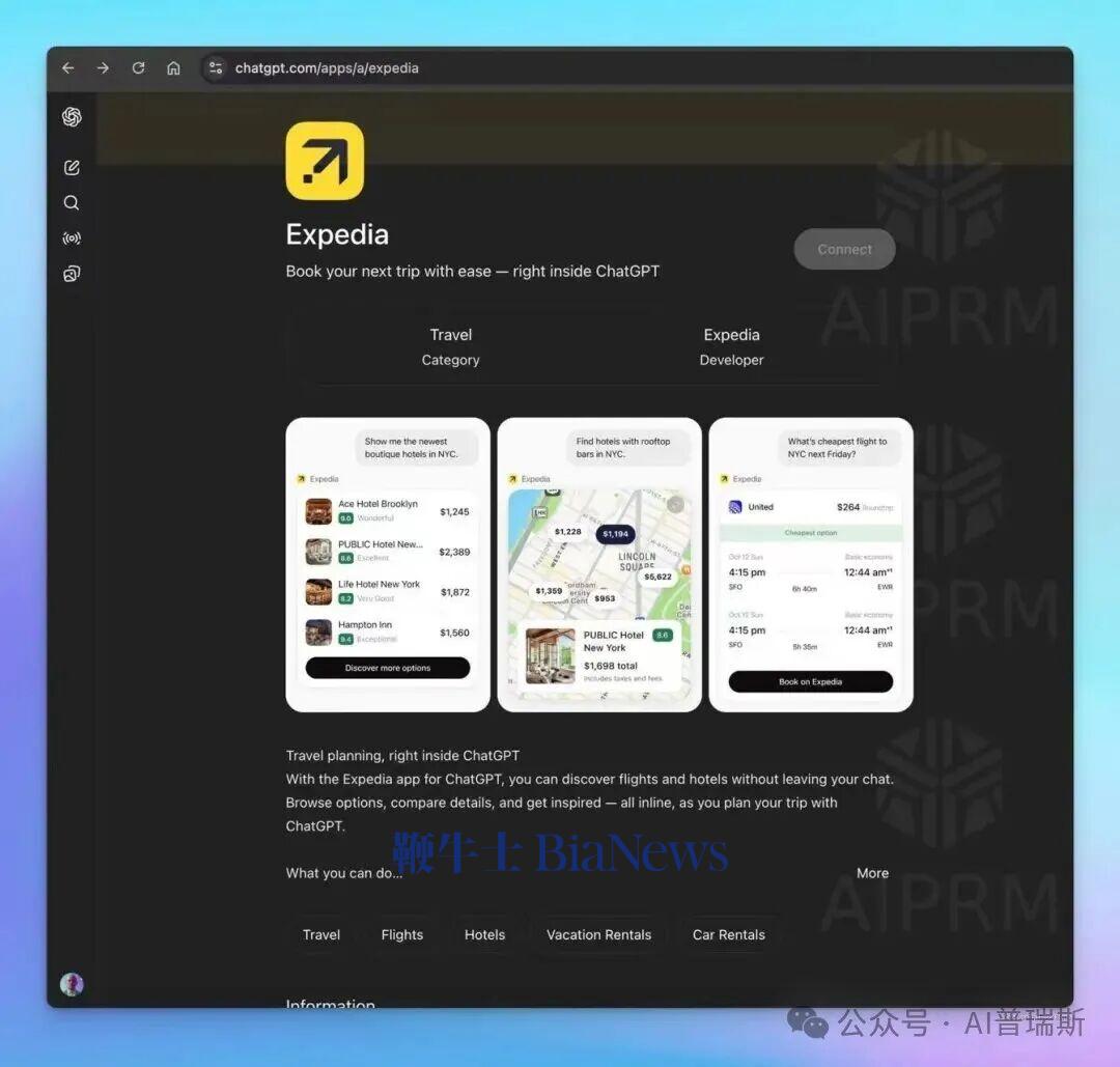 这一界面首次让开发者构建的第三方应用以系统化方式在ChatGPT内展示,并支持用户浏览、搜索和一键添加使用。