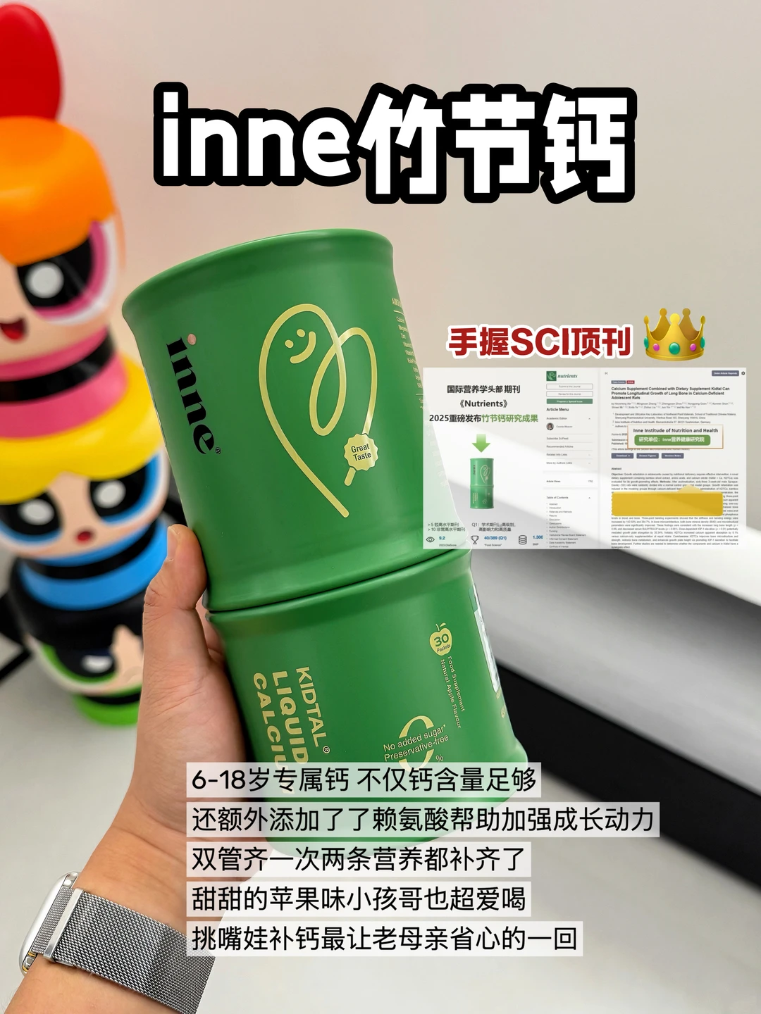 我们家这个阶段喝的很多的🎍inne竹节钙,是 6 - 18 岁学龄娃的专研。不仅钙镁锌D3K2含量够,还加了赖氨酸、精氨酸、γ-氨基丁酸这些帮助成长的成分,双管齐下。液体钙口感好,味道也是甜甜的苹果味,我儿子可喜欢,每天2条基本不用我催。