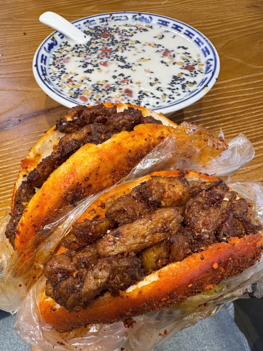 杭州我心中最好吃的兰州烧烤!! 门头不起眼就在马路边,除了附近居民来吃还有很多专门来的食客!明火辣子烤肉盲点不踩雷,肥瘦相间香得流油😭包烤饼真的一口惊为天人的好吃!!炸宽粉、牛肉砂锅、酒酿醪糟牛奶……值得我坐15站地铁来!!叫:丝路炙焰)