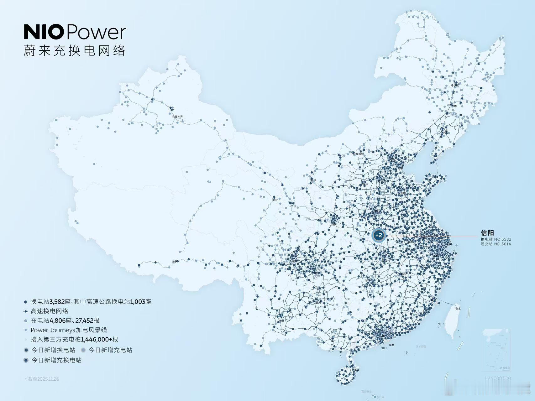 11月26日 NIO Power 2站上线NO.3582 蔚来换电站 | 信阳罗山新都国际大酒店NO.3014 蔚来超充站 | 信阳罗山新都国际大酒店持续布局-让加电比加油更方便