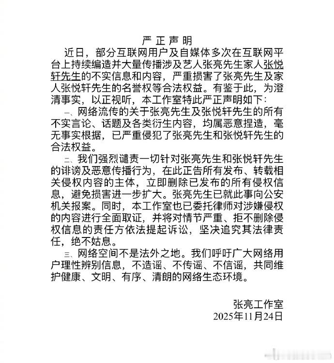 张亮称已报警立案张亮回应儿子传闻 此前有网友爆料“麻辣烫奶爸的儿子老在国内闹事,所以被送到国外读书,结果把同学肚子搞大了”,有网友怀疑是张亮和其儿子天天。对此,张亮称已经报案,“网络不是法外之地,请不要无下线造谣!!! ”
