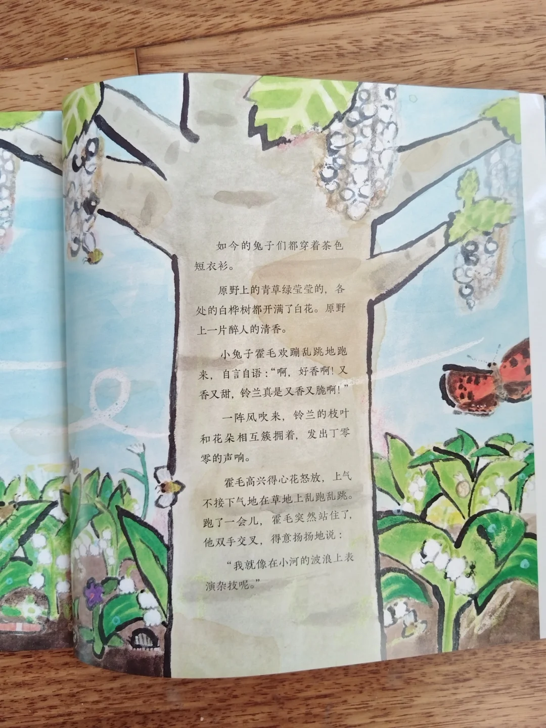讲的是一只叫霍毛的小兔子,因为救了一只小鸟。为了报答霍毛,鸟国王送给他一颗“贝火”的宝珠。这个宝珠让这只普通的小兔子有了森林里最高的权力,以及之后霍毛的做法…
