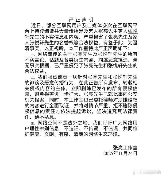张亮称已报警立案张亮回应儿子传闻 此前有网友爆料“麻辣烫奶爸的儿子老在国内闹事,所以被送到国外读书,结果把同学肚子搞大了”,有网友怀疑是张亮和其儿子天天。对此,张亮称已经报案,“网络不是法外之地,请不要无下线造谣!!! ”
