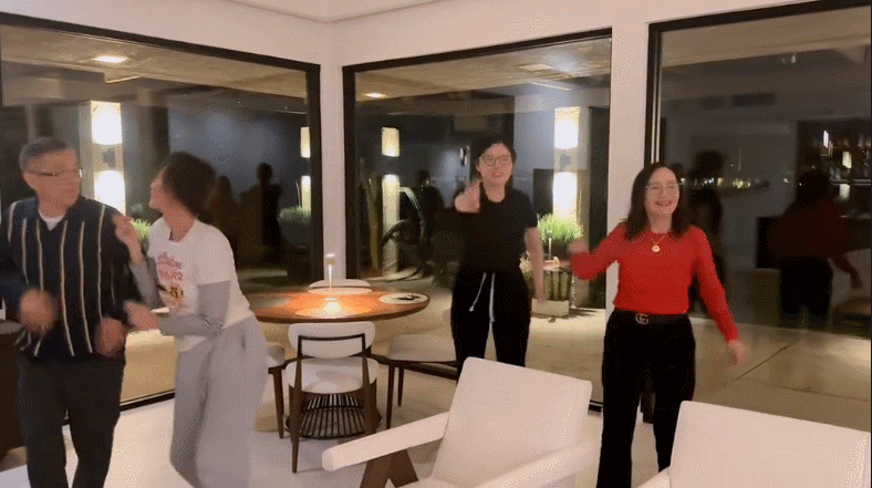 尹子维真的只是擅长演坏人,现实中的他对待徐冬冬很贴心,很照顾她在异国的感受。 今天是尹子维妈妈的80寿辰,尹子维发视频记录了一家人为其庆生的画面。 一家人在美国的一家餐厅吃饭,饭局上能看到尹子维的哥哥。 两个人的长相还是挺反差的,尹子维属于那种看着坏坏的,哥哥则看着有点憨态可掬。 而尹子维的妈妈则保养的很好,看的出来是上年纪了但是绝不像80岁的人。 点餐期间,尹子维怕徐冬冬看不懂美国菜单,于是就挨个翻译给她,看她想吃什么。 菜上桌之后,尹子维拿手机记录徐冬冬吃到嘴里的反应。 看着徐冬冬搞笑的动作,他在镜头后面会很温柔的笑。 不得不说,尹子维比徐冬冬大15岁,还是很会照顾人的。 这一餐结束后,一家人又回到位于美国的豪宅,为妈妈准备晚上的晚餐。 准备期间,从镜头里能看出来,这栋房子还挺豪华的,在院子里有泳池,落地窗外还有大片的草地。 整个房间的面积很大,装修十分豪华,指定是价值不菲。 饭上桌后,一看菜品没有一个中国菜,全是美式风味,看来在外面生活久了,饮食习惯还是有所改变。 饭后大家一起在桌边听着音乐跳舞,徐冬冬来到厨房想要帮忙收拾碗筷。 但是尹子维却不让她插手,让她去客厅跟大家一起跳舞,这里不用她管。 看到这里,尹子维给人感觉还真是反差感满满,电视里演的角色让人一眼就能看出来是坏蛋,但是现实中却这么会照顾人。