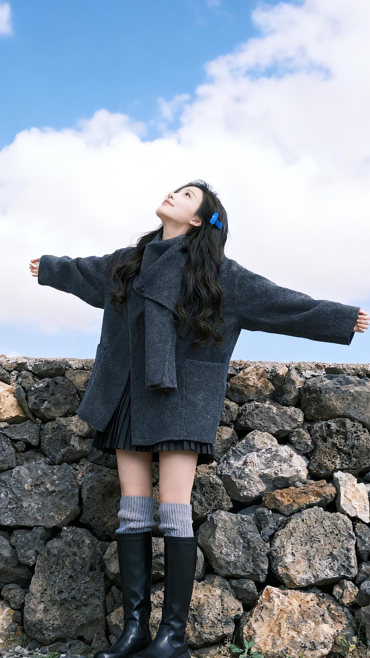 这套冬日氛围感穿搭真的戳中我!灰调大衣+百褶裙+厚底靴,松弛感和韩系甜酷感直接拉