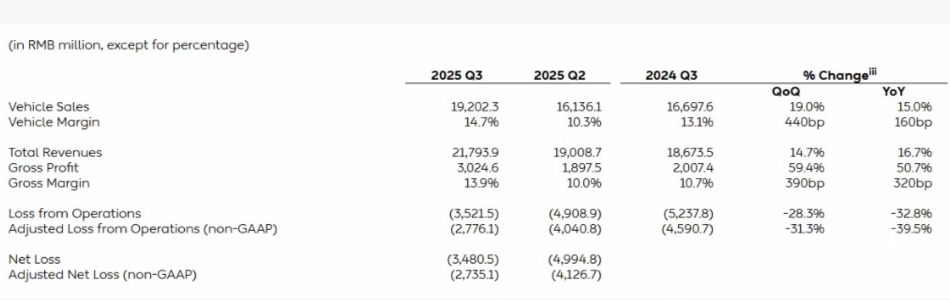 11月25日,蔚来汽车交出了一份亮眼的三季度成绩单——营收、交付量、毛利率均创历史新高,净亏损同比大幅收窄31.2%至34.805亿元。蔚来创始人、董事长兼CEO李斌在财报电话会上信心满满地表示,公司有信心在今年第四季度实现盈利。