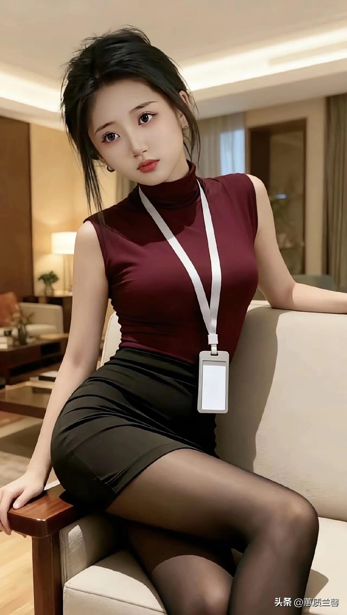职场穿搭 优雅职场风, 酒红色连衣裙, 搭配黑色丝袜, 尽显女性魅力! 猜猜她是干哪个职业的? 黑裙丝袜写真