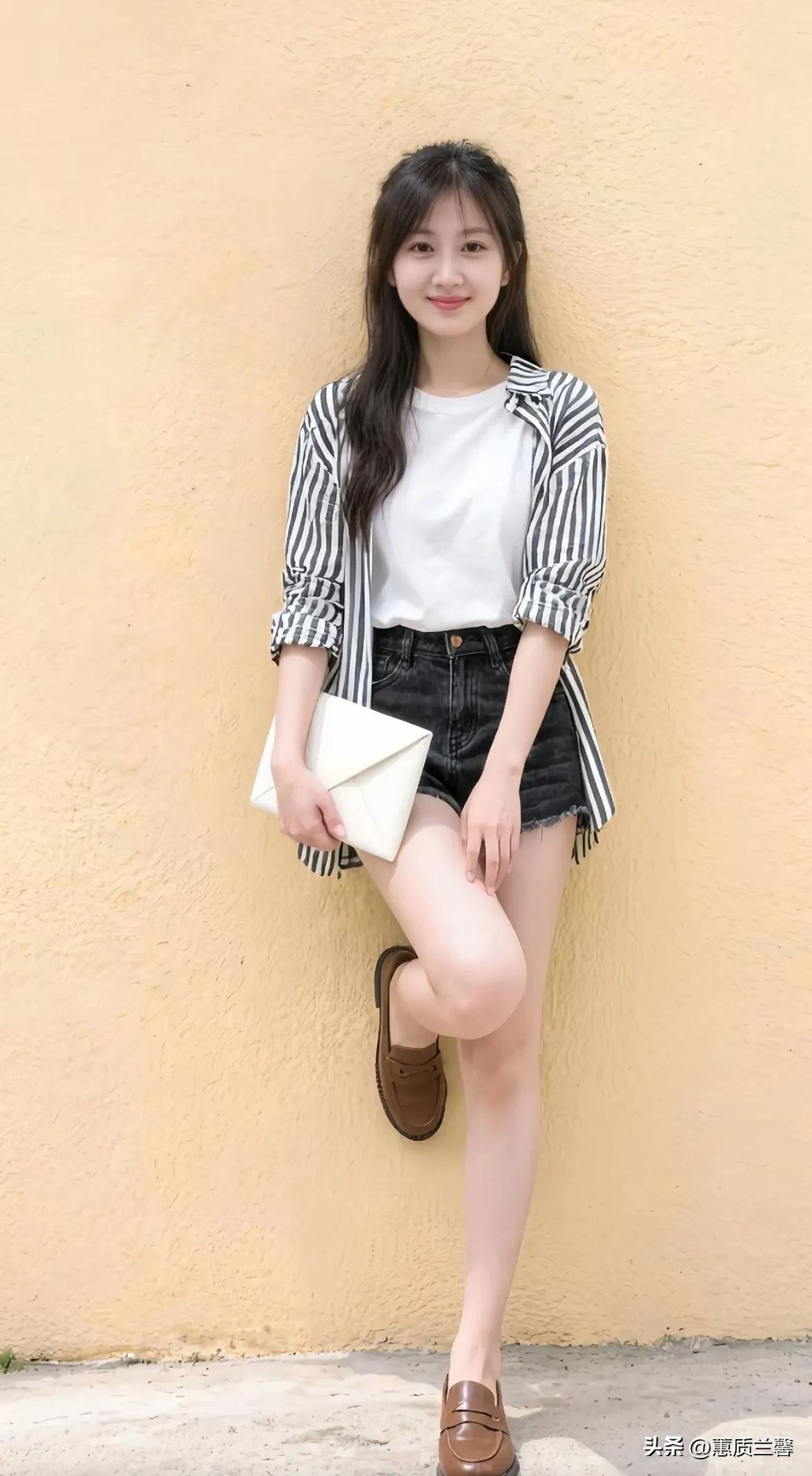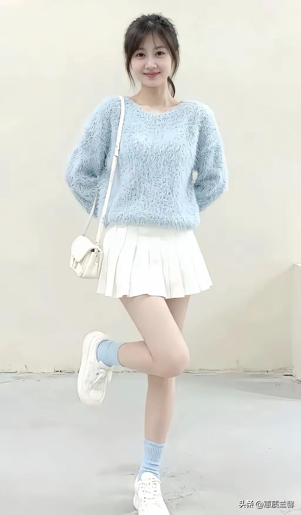 清纯可爱的美少女, 举手投足间释放出少女的懵懂, 穿衣打扮方面清新自然, 没有浓