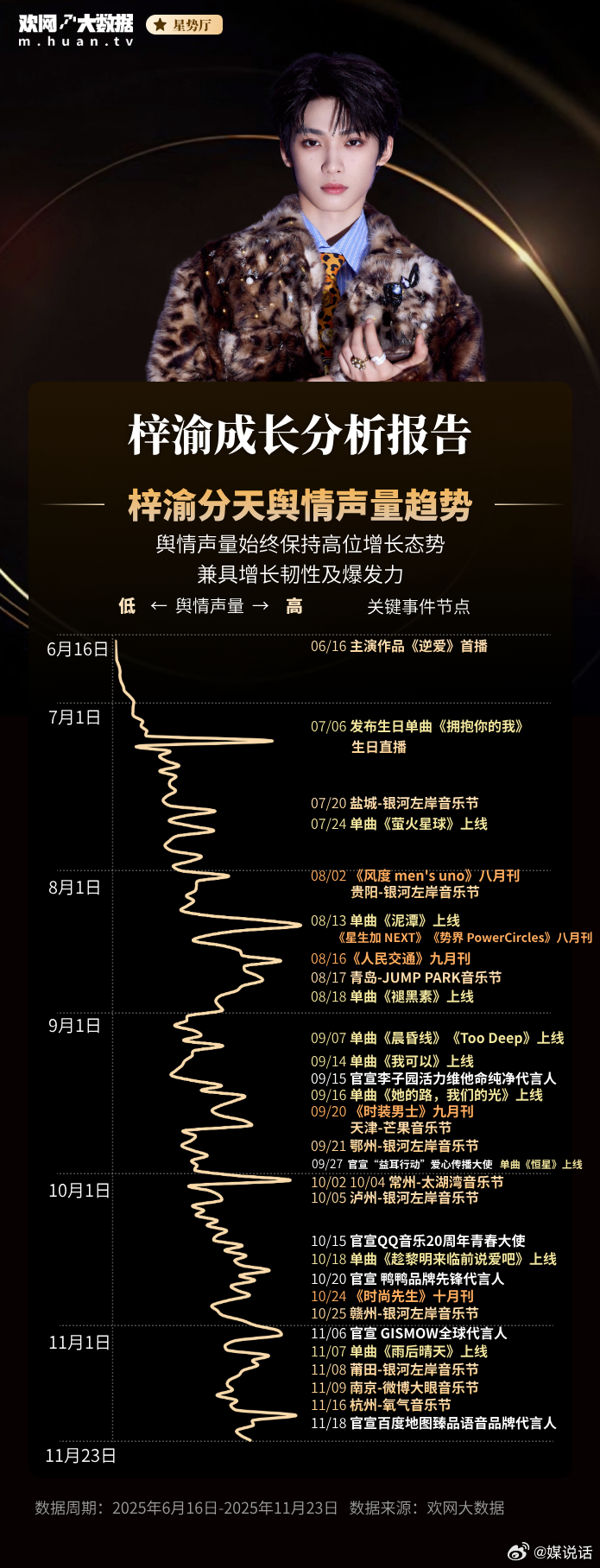 梓渝内娱3.0顶流 欢网大数据认证梓渝为内娱3.0顶流代表,短短数月已经称霸国内