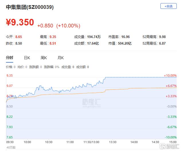 中集集团:今日涨停,全天换手率8.46%,成交额17.64亿元,振幅9.87%。龙虎榜数据显示,机构净买入1.87亿元,深股通净买入1064.51万元,营业部席位合计净买入3088.10万元。