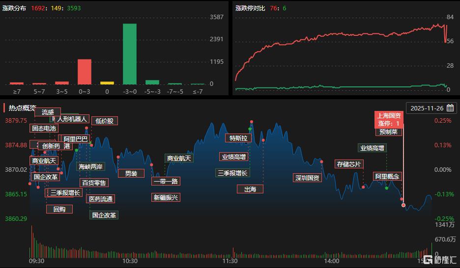 11月26日,A股三大指数涨跌不一,全市场成交额1.8万亿元,较前一交易日缩量290亿元。