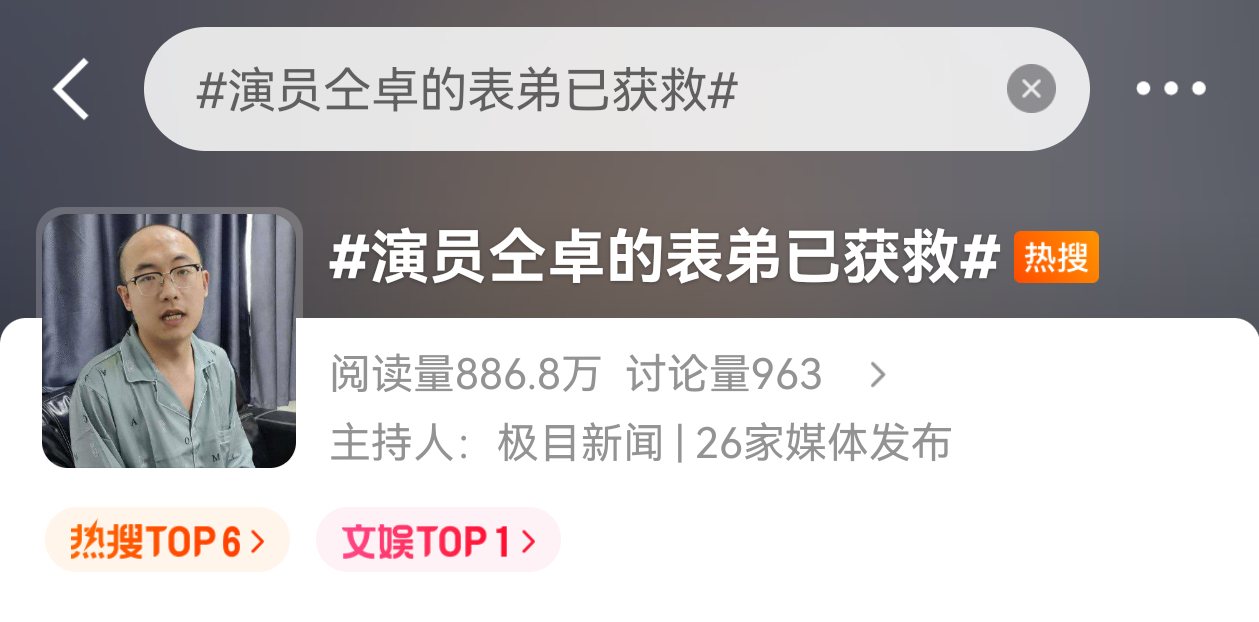仝卓表弟获救画面 到底什么是真的 演员仝卓的表弟已获救