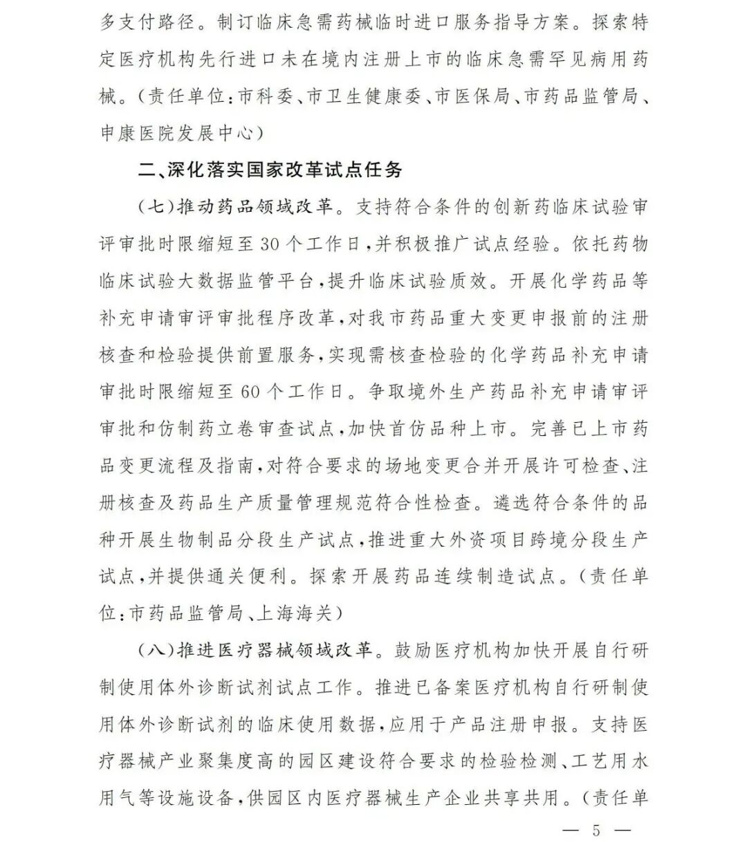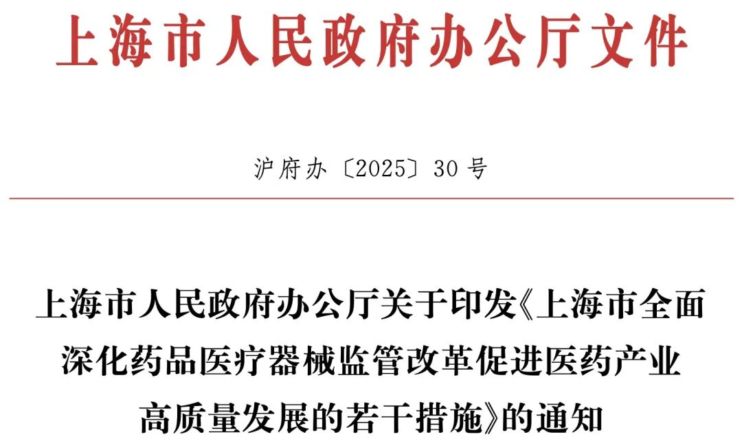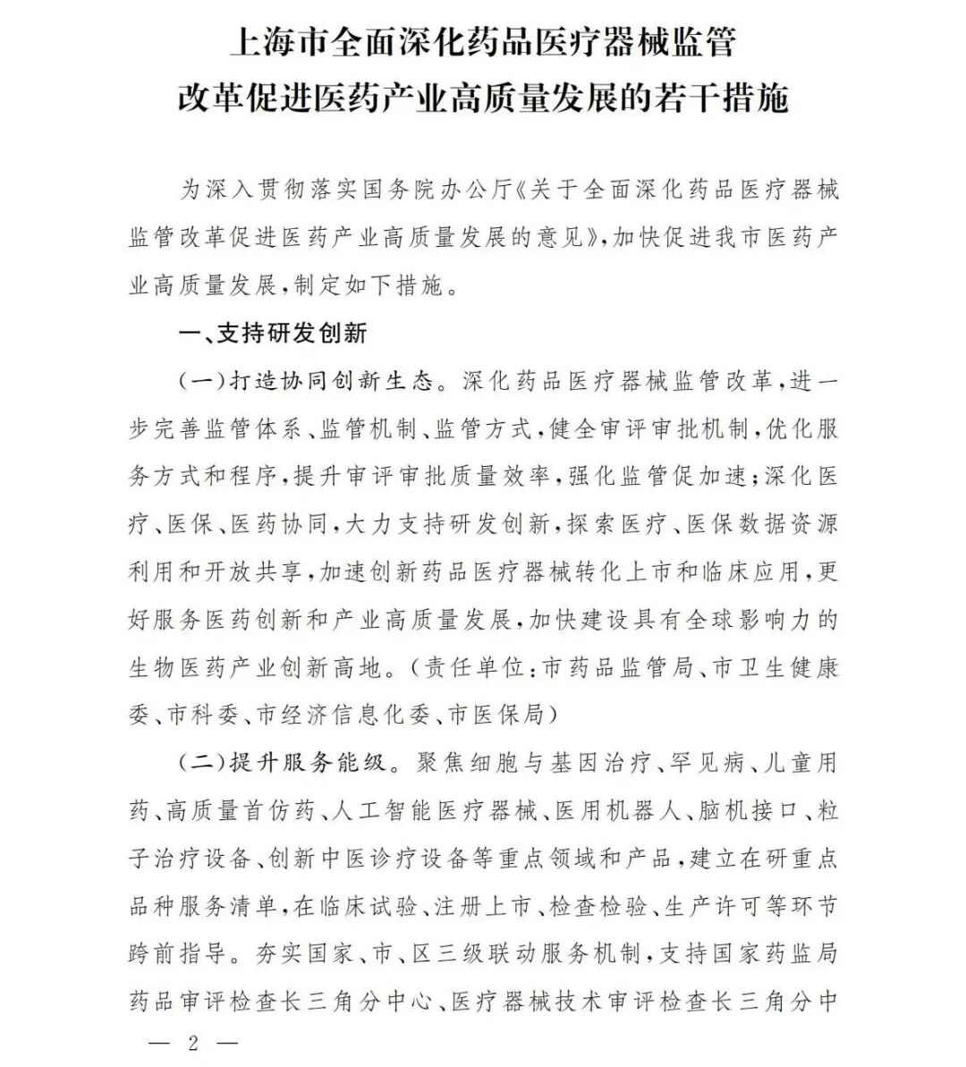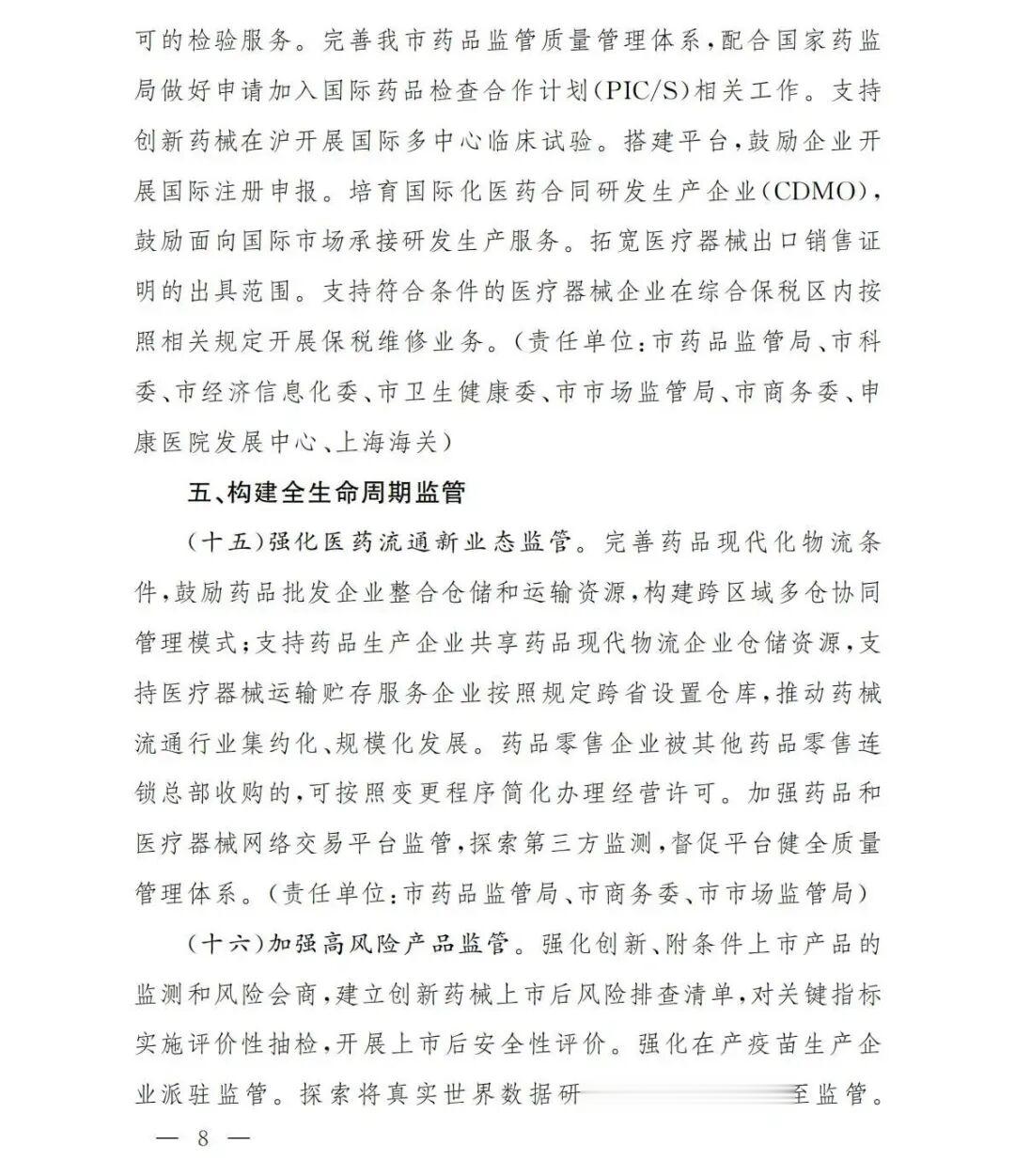 同日,上海市人民政府官网发布《上海市全面深化药品医疗器械监管改革促进医药产业高质量发展的若干措施》(完整见文末)。
