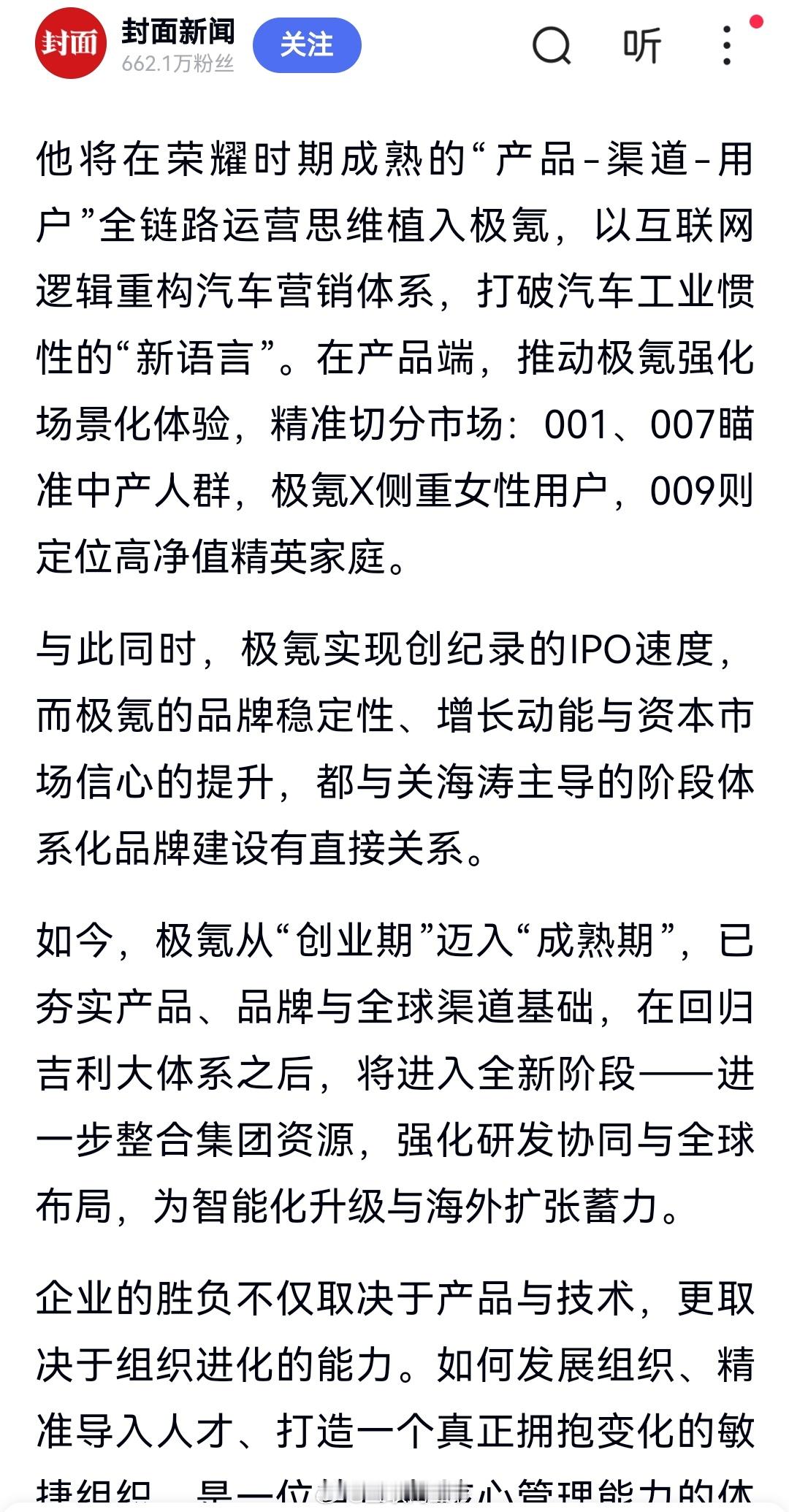原极氪CBO关海涛入职荣耀 原极氪汽车首席品牌官关海涛正式回归荣耀,荣耀发展的关键节点强势补位。关海涛在品牌战略与市场营销领域经验丰富,其加盟无疑将为荣耀注入新的活力。此次回归,被普遍视为荣耀即将在海外市场有大动作的强烈信号。在荣耀全力冲刺全球化布局的关键时期,关海涛或将肩负起开拓海外市场的重任,带领荣耀品牌在全球舞台上再攀高峰。期待荣耀的下一步精彩棋局!