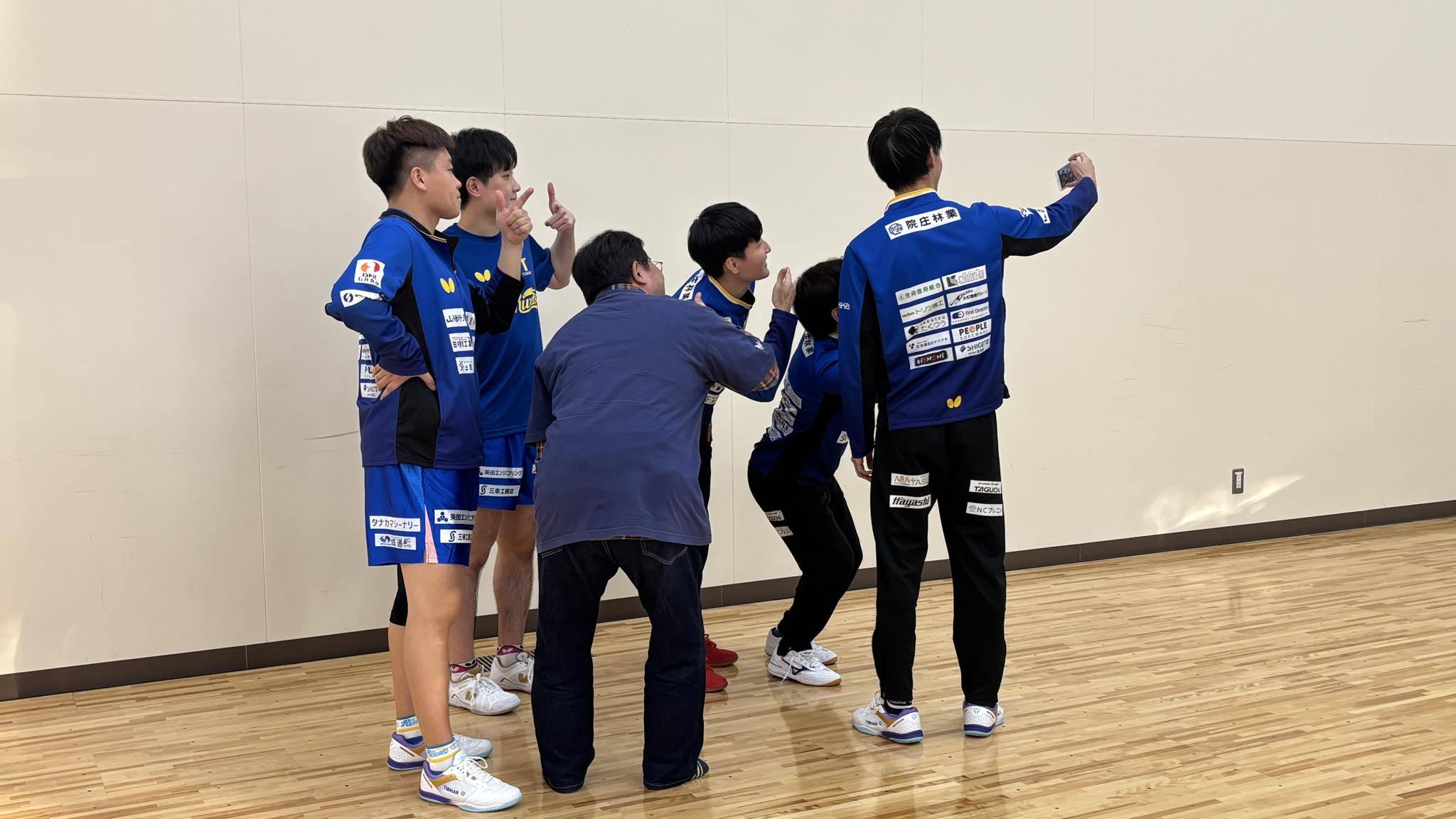 张本智和张本智和t联赛 20251126X提及cr.kawanonoriyuki(川野整骨院院长 川野纪行) 11月26日是“好团队之日”(*“11.26”在日语中和“好团队”发音相似)。说到“好团队”,在我心中果然还是会想到冈山Rivets。当听说冈山要加入乒乓球T联赛的时候,我真的非常震惊。之后,陆续公布了将要加盟的选手们,朋友们还对我说:“冈山,稳稳垫底!”或者“T联赛撑不过三年吧。”因为这些话我很不甘心,所以就想:那我一定要全力支持他们!从第一个赛季一路应援到现在已经8年了,想到这里也觉得不可思议。前几天,在观看了冈山Rivets的比赛之后,我参加了粉丝俱乐部特典——探访球队后台。因为冈山武道馆旁边的剑道馆(?)以前举办过冈山Rivets的乒乓球教室,这次因为球队更衣室较小,就改在这里拍照与签名。(图1)我和妻子前一天还讨论说:“要请他们拍什么样的合照呢?”最后决定——让他们把我们加入到“胜利时的自拍写真”里。明明是我妻子先想到的点子,结果她一紧张就不进镜头了,只有我一个人咔嚓拍了一张。(图2)成品就是这样。自拍是由队里个子最高的田添响选手兼教练掌镜的。后面穿着黑色羽绒服、小小地出现在背景里的各位,是当天的对手:木下的选手们。(图3)接着是合照和签名的时间,但因为我太紧张,竟唯独给张本智和选手拍出来的照片变成了那个样子!(图4)但温柔的张本智和选手又从更衣室里走出来一次,让我重新拍了一张。其他粉丝几乎都是女性,我还说:“对不起,让我一个大叔混在里面了。”他却对我说:“不不不,非常感谢。我很开心!”此外,我还和白神总监督、郝帅选手聊了不少,也和及川选手好好聊了一会儿。虽然时间转瞬即逝,但真的非常愉快。冈山Rivets的各位、以及选手们,在比赛刚结束的疲惫时刻,还抽空接待我们,真的非常感谢!!(图5)