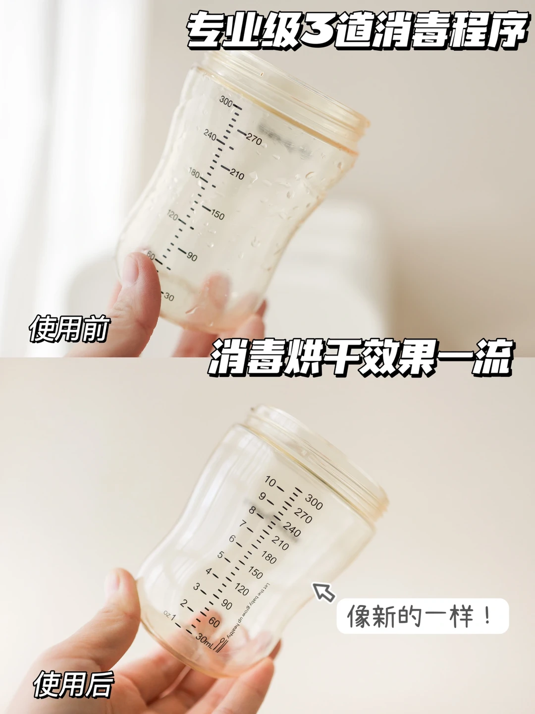 💁♀️每次只要把它放进去,我就不用再多费心啦!30分钟的时间就能完成消毒和烘干,奶瓶拿出来一点水渍都没有,随拿随用,主打一个安心!