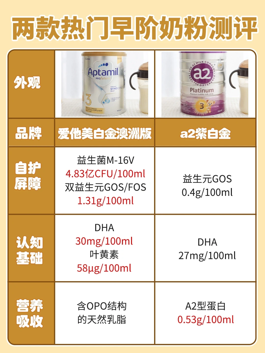 究竟怎么给宝宝选出适合自己的早阶奶粉❓怎么才能不踩坑❌今天就来和家长们从自护屏障、认知基础、营养吸收③个维度测评2款妈妈圈热门的早阶奶粉 爱他美白金澳洲版 VS a2紫白金 🧐帮各位家长选出早阶奶粉中的配方天花板,更好的为宝宝成长保驾护航~