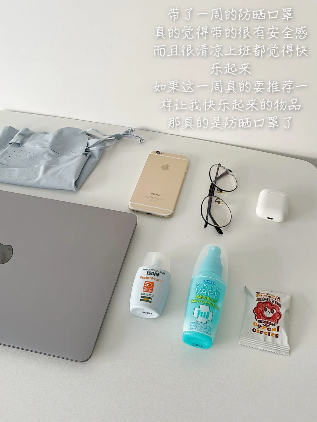 一周穿搭交卷 一周物品审视交卷 如果盘点这周让我快乐的物品,那就是防晒口罩。带足五天,天天出门都快乐,因为防晒又凉爽!带上去就是阿拉伯女人谁也不认识谁![自拍R] 一周穿搭的夏装就那么多,夏装我是最少的,来去都是这几套,但是我很满意,简单就好。 愿越来越好!