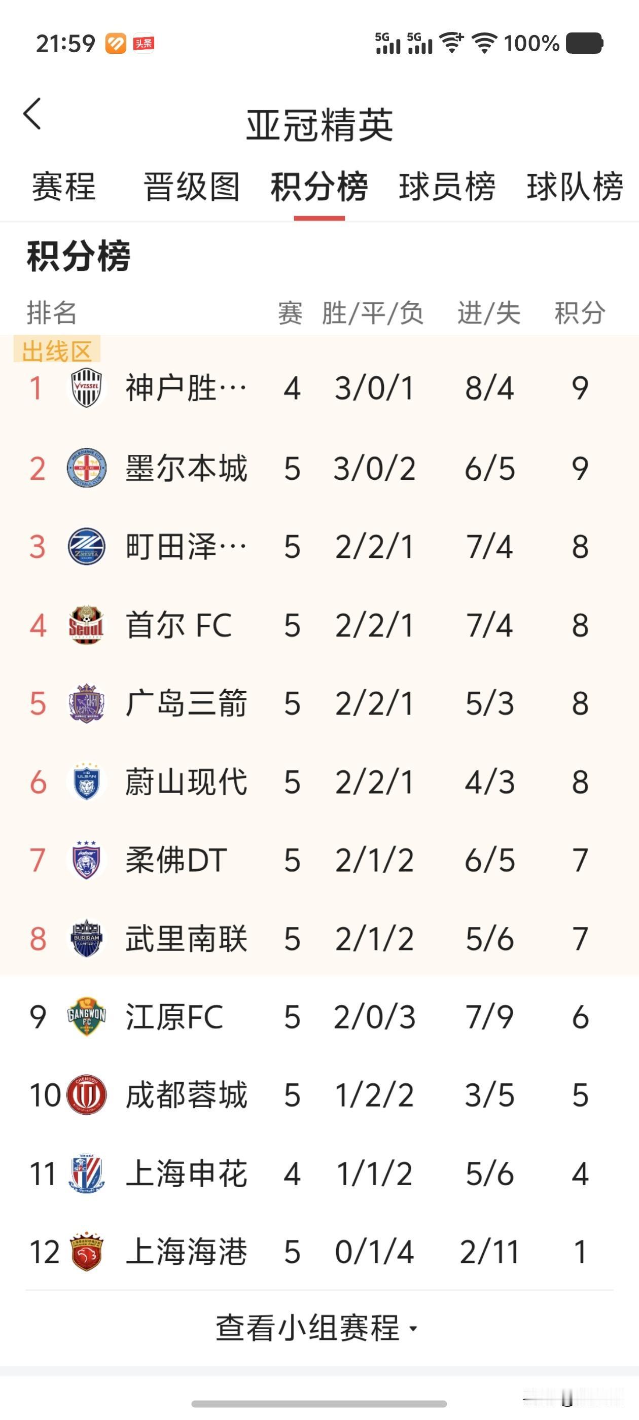 亚冠精英赛五轮过后,积分榜出现了一个非常有趣的局面,有两个特点。 一是中超三强排名倒数后三位,排列的非常整齐,非常蹙眼,均处于小组赛被淘汰位置。 二是与中超联赛排名处于逆向排列。中超联赛第一的海港排名倒数第一,第二的申花排名倒数第二,第三的蓉城排名倒数第三。 这个排名估计不会有太大变化了,真给中国球迷长脸啊!