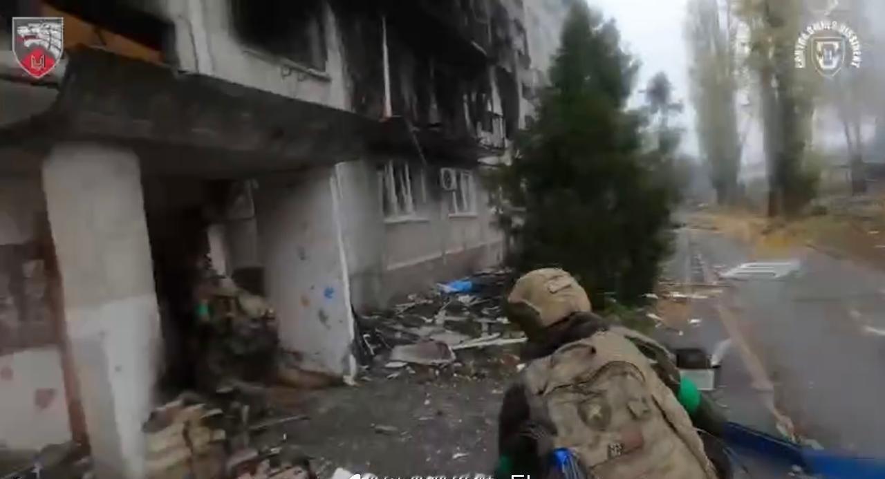 乌军第3特战团的一个小队在红军村郊区活动,具体时间不明,地点大致是斯捷潘博夫昆街和秋列宁街的交叉口。 俄乌局势