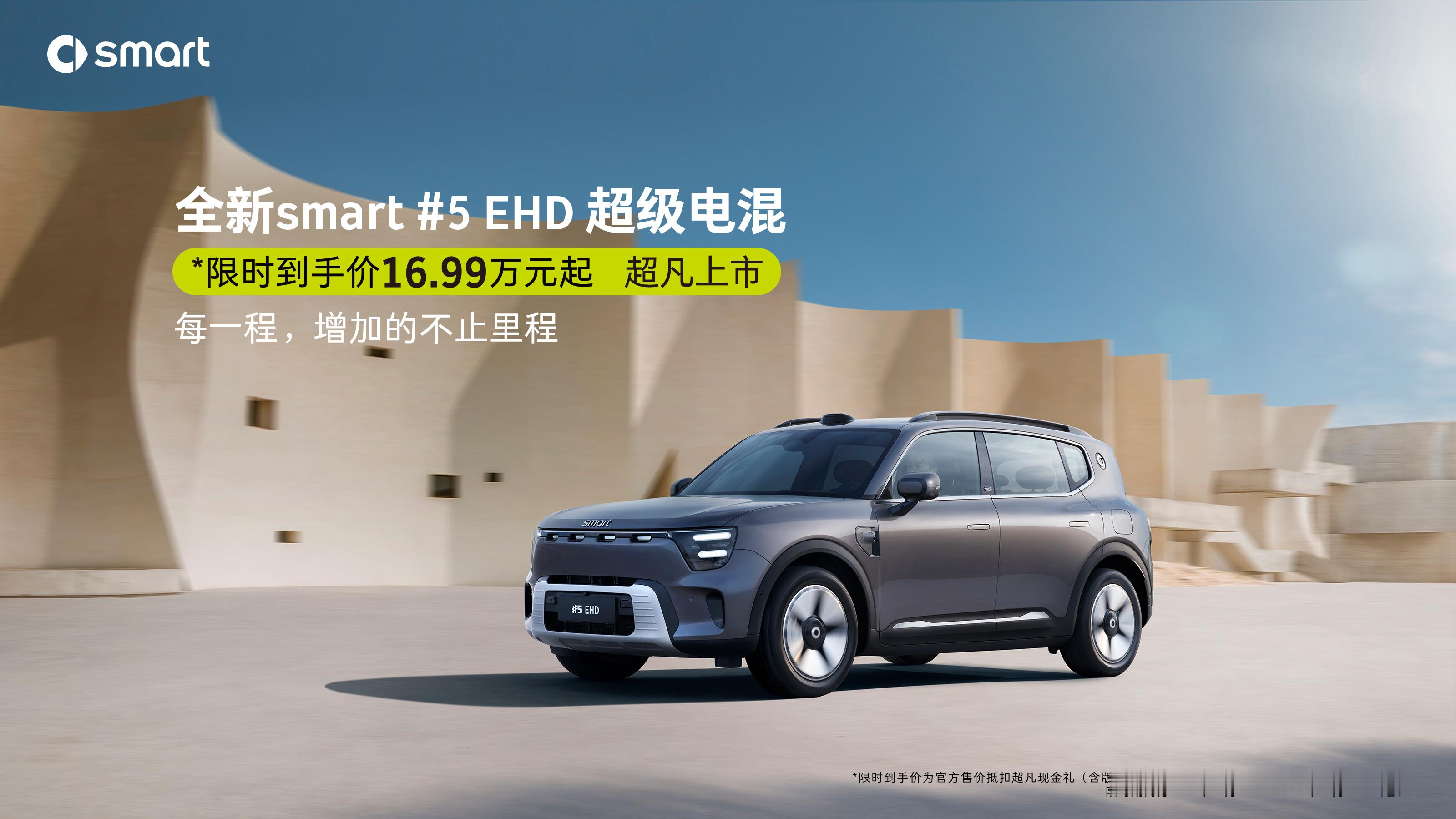 中德混血的超级电混够理想吗 smart这次推出5 EHD超级电混,算是正式迈入“纯电+混动”的2.0时代,也标志着smart品牌转型的开始!以前提到smart我脑子里的印象是一台小巧的城市代步车,现如今已经拓展到混动SUV,车子还保留了德系品质的底子。考虑用户提车等因素,这次开启全国同步交付,把提车的仪式感和用户相结合,打造新奢定位。这次smart 5 EHD 更贴合日常用车的品质需求,也让这波转型看到了不一样的smart。作为一台20万元级的豪华插混SUV,smart 5 EHD有1615km综合续航和252km纯电里程,官方综合4.4L亏电油耗,搭载的是雷神电混2.0技术,市区通勤就用电,跨城旅游就用油!内部是大五座空间布局,得房率85%,还有零重力座椅缓解长途的劳累,这些配置对家庭用户是实打实的加分项!