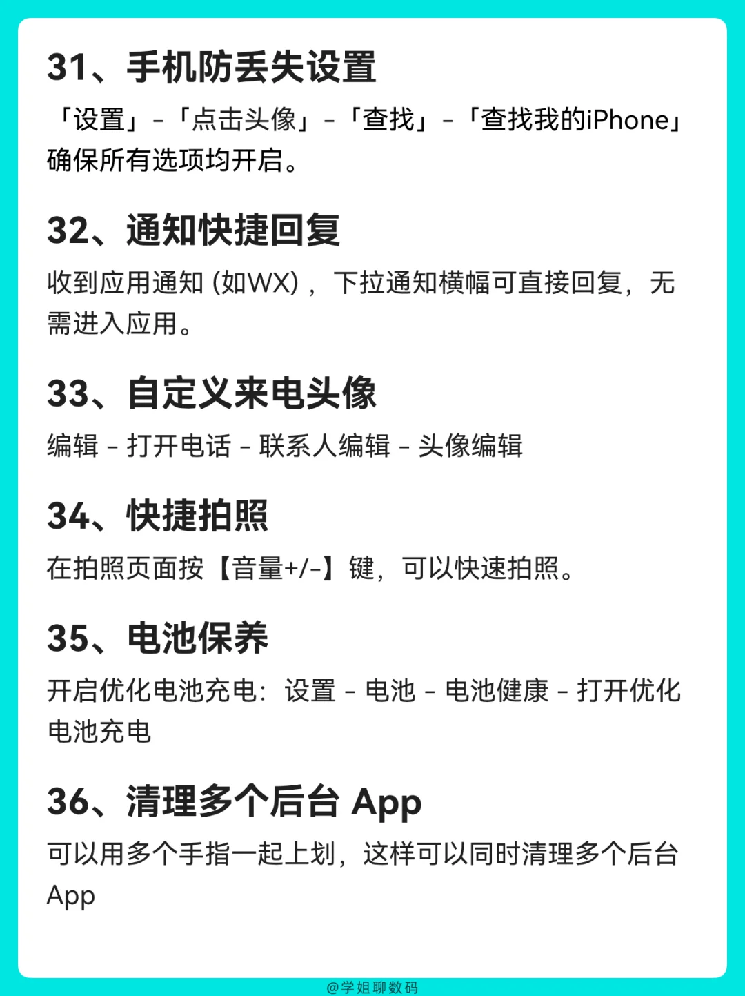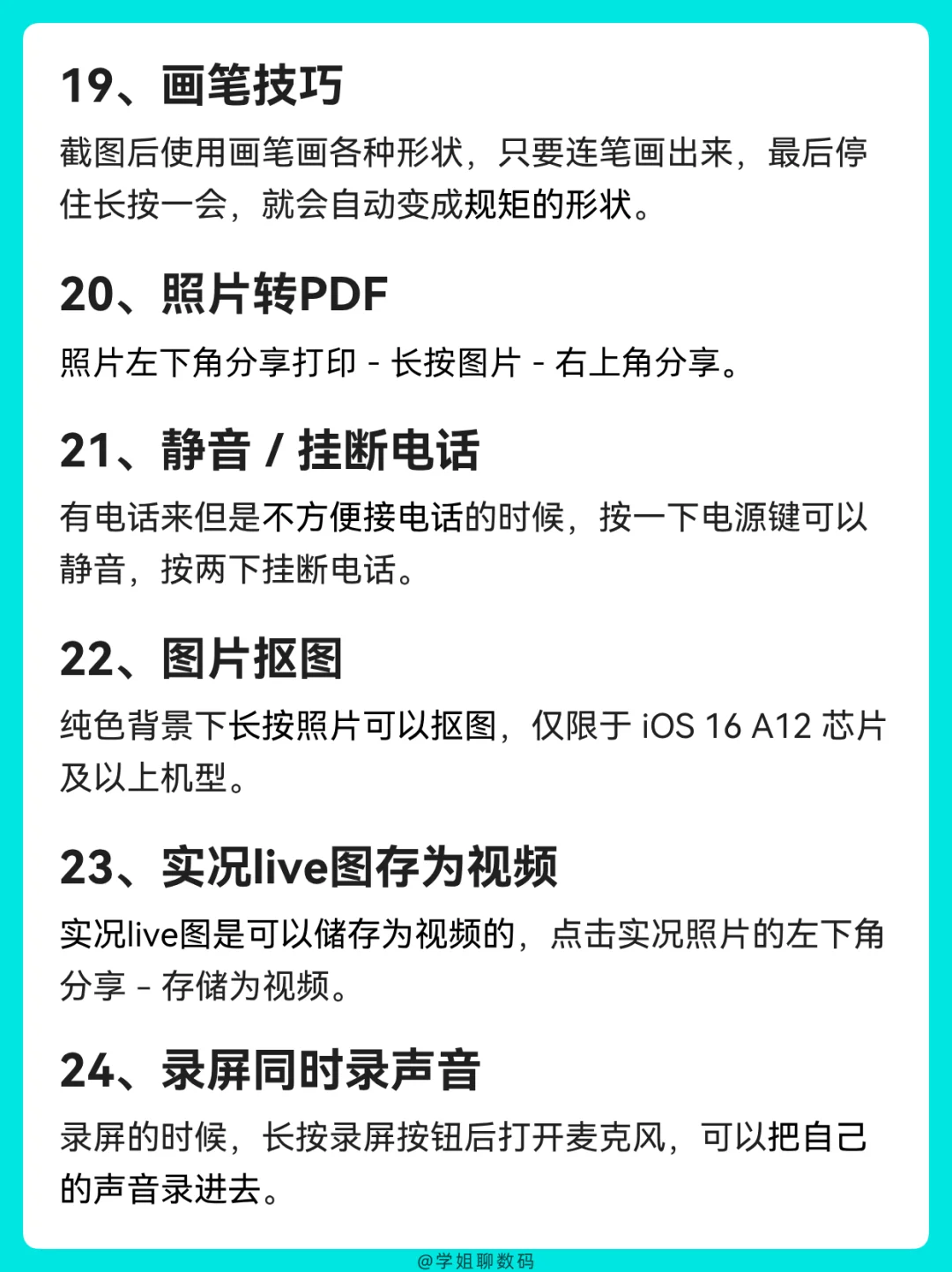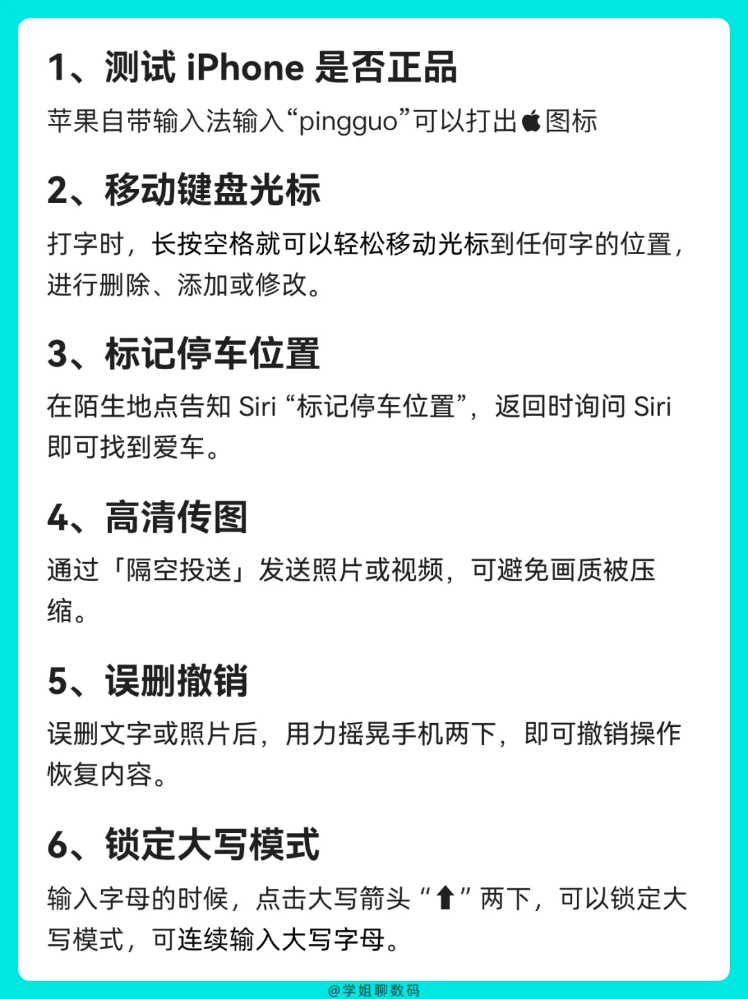 好多iPhone隐藏技巧也是学姐近期才发现的,每一个功能真的都超级实用!记得一定要🐴住,别让大几千块的iPhone手机白买了!还有任何人不知道学姐都会很伤心的😭