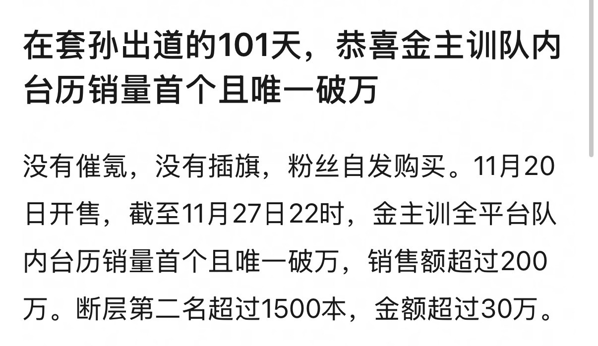 恭喜金主训Cortis队内台历销量首个且唯一破万